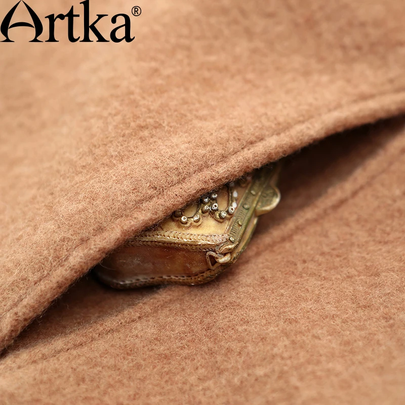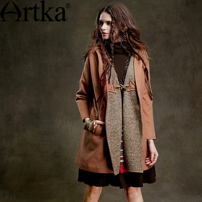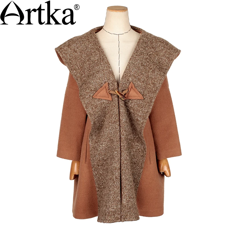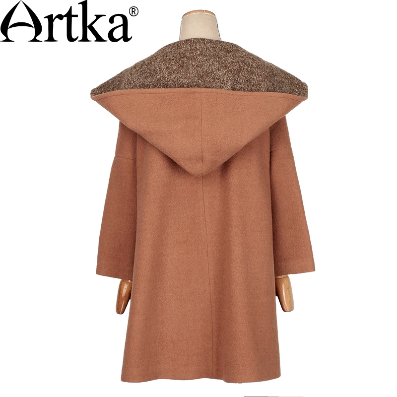 Женское вязаное шерстяное пальто ARTKA, винтажное пальто с капюшоном и рукавами летучая мышь, Осень-зима, FA15155D
