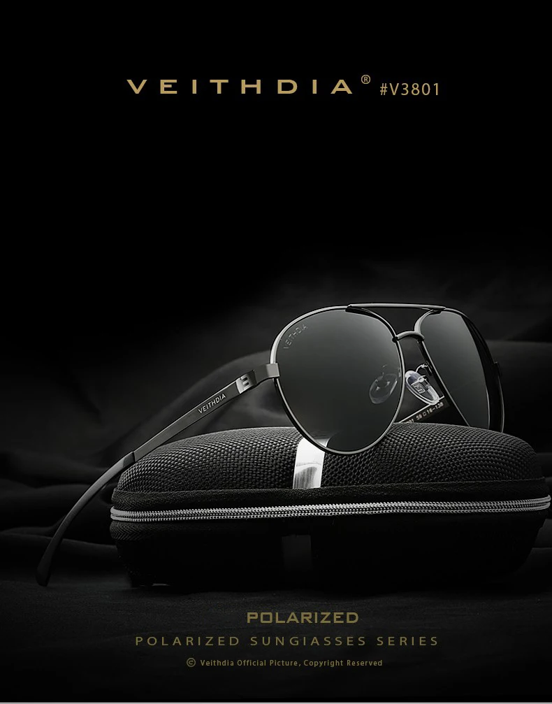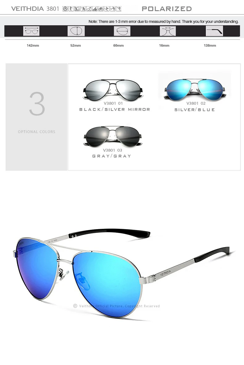 Мужские солнцезащитные очки VEITHDIA, модные дизайнерские очки с зеркальными поляризационными стеклами, степень защиты UV400, для вождения, модель 2020, 3801