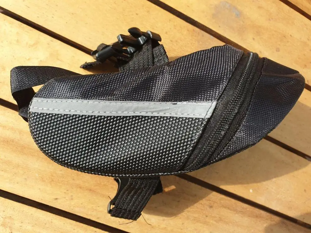 Хорошая сумка, крепкая и прочная, дно держит форму, благодаря пластиковой вставке. Надёжно крепится под сиденьем двумя липучками + к подседельной вилке одной липучкой. Телефон 6 дюймов не вмещается, думаю, что вместится телефон не более 5 дюймов. В сумке внутри один отсек, имеется хлястик на липучке для пристёгивания, например, ключей от квартиры.