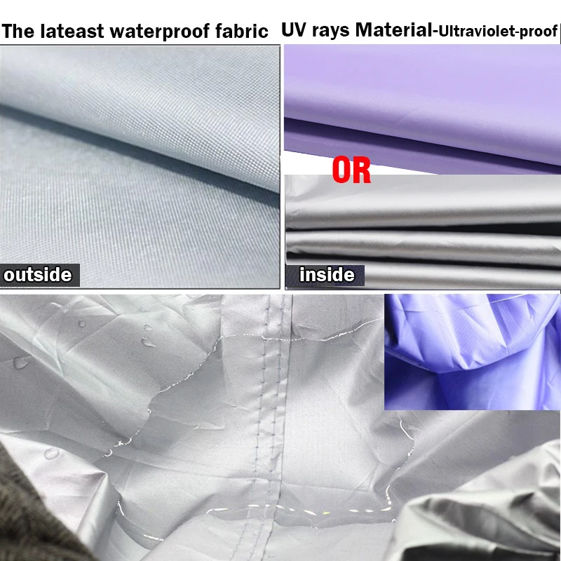 -Плотно прилегающий эластичный подол окружает весь автомобиль. Водоотталкивающая ткань защищает автомобиль от солнца и дождя для превосходной защиты.