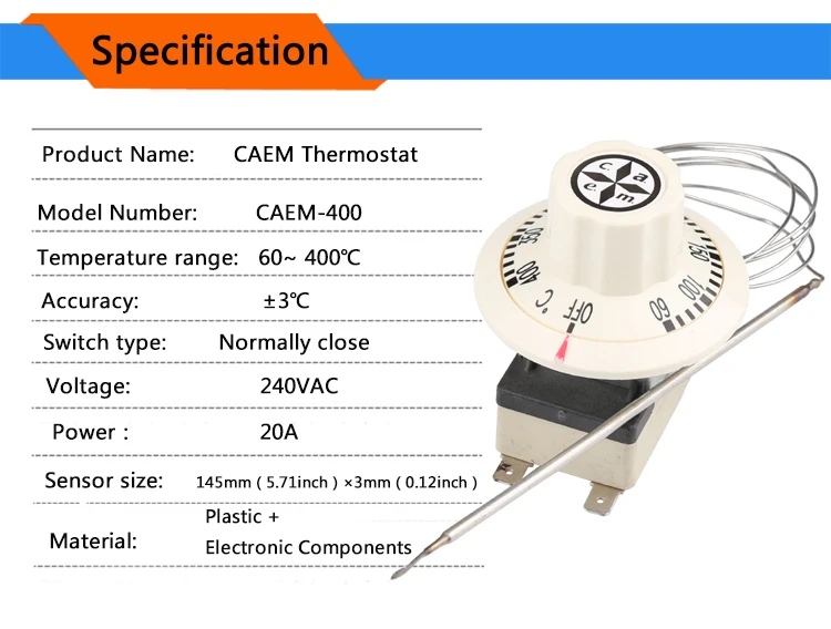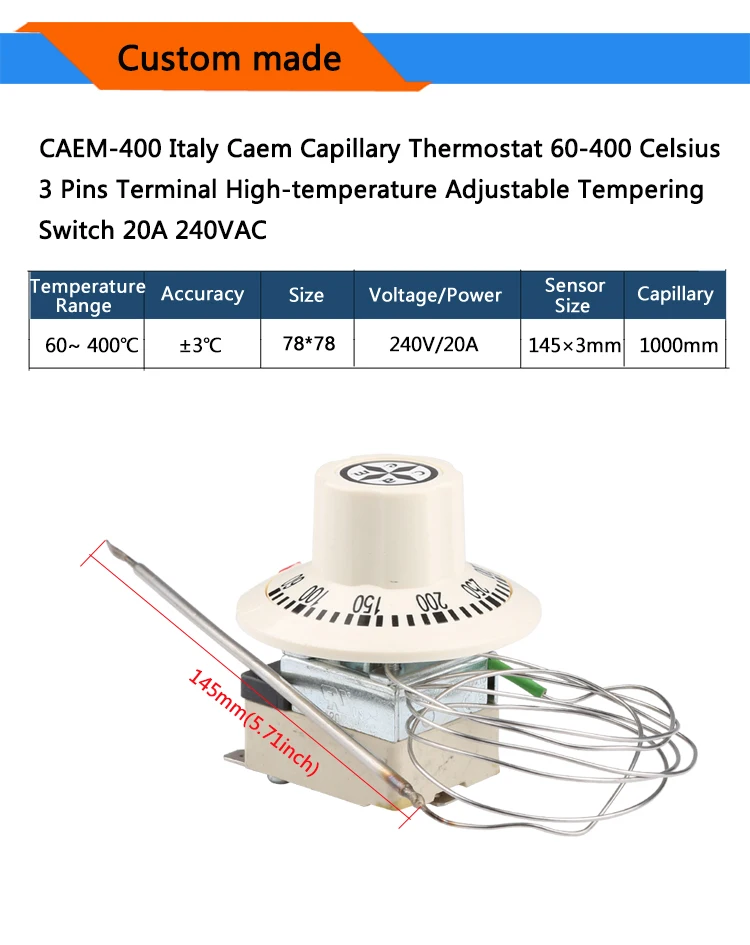 60-400 Цельсия Италия CAEM-400 капиллярный термостат-20A 240VAC 3 контакта терминал высокой температуры Регулируемый отпускной переключатель