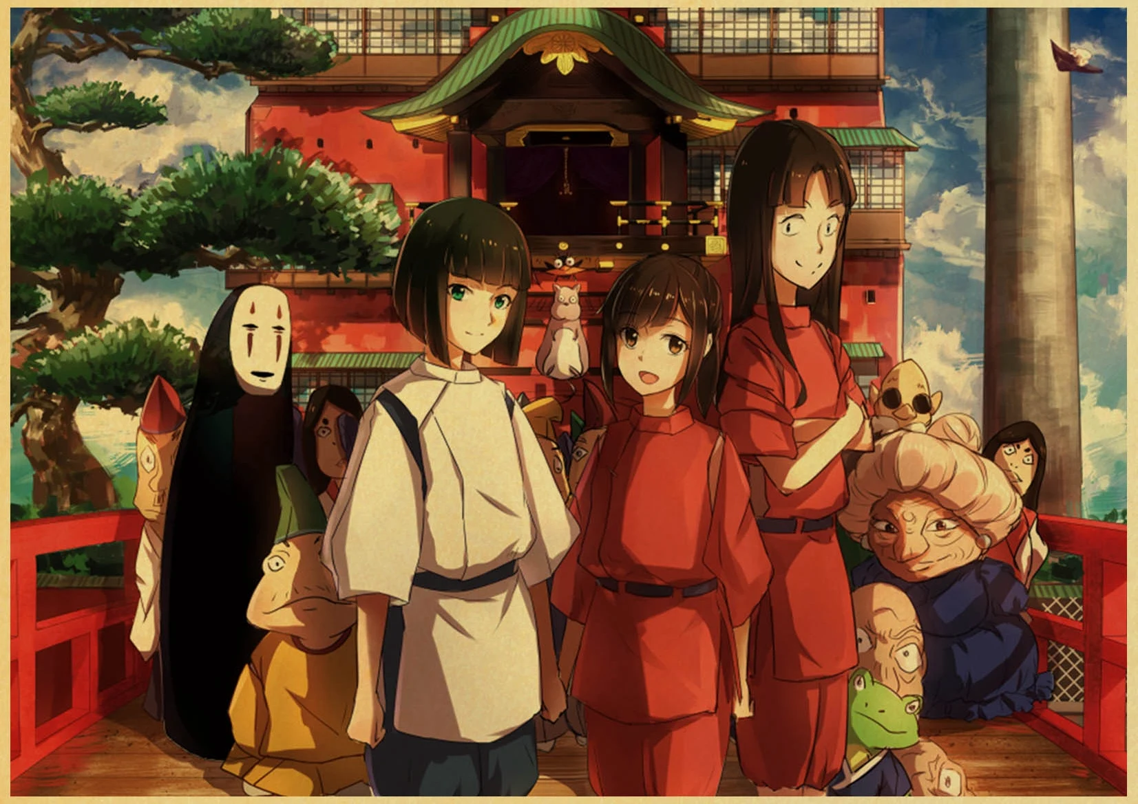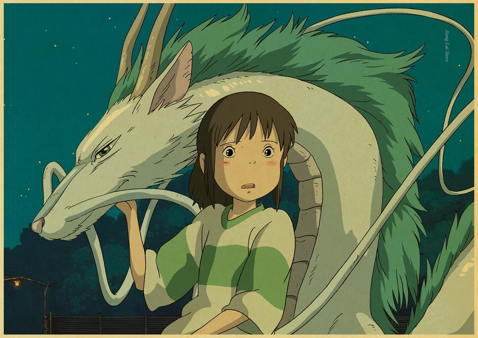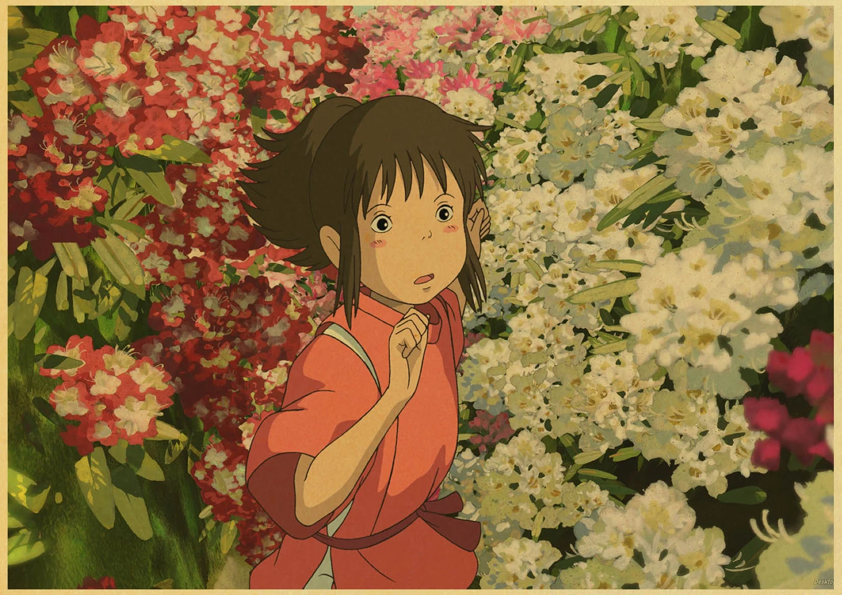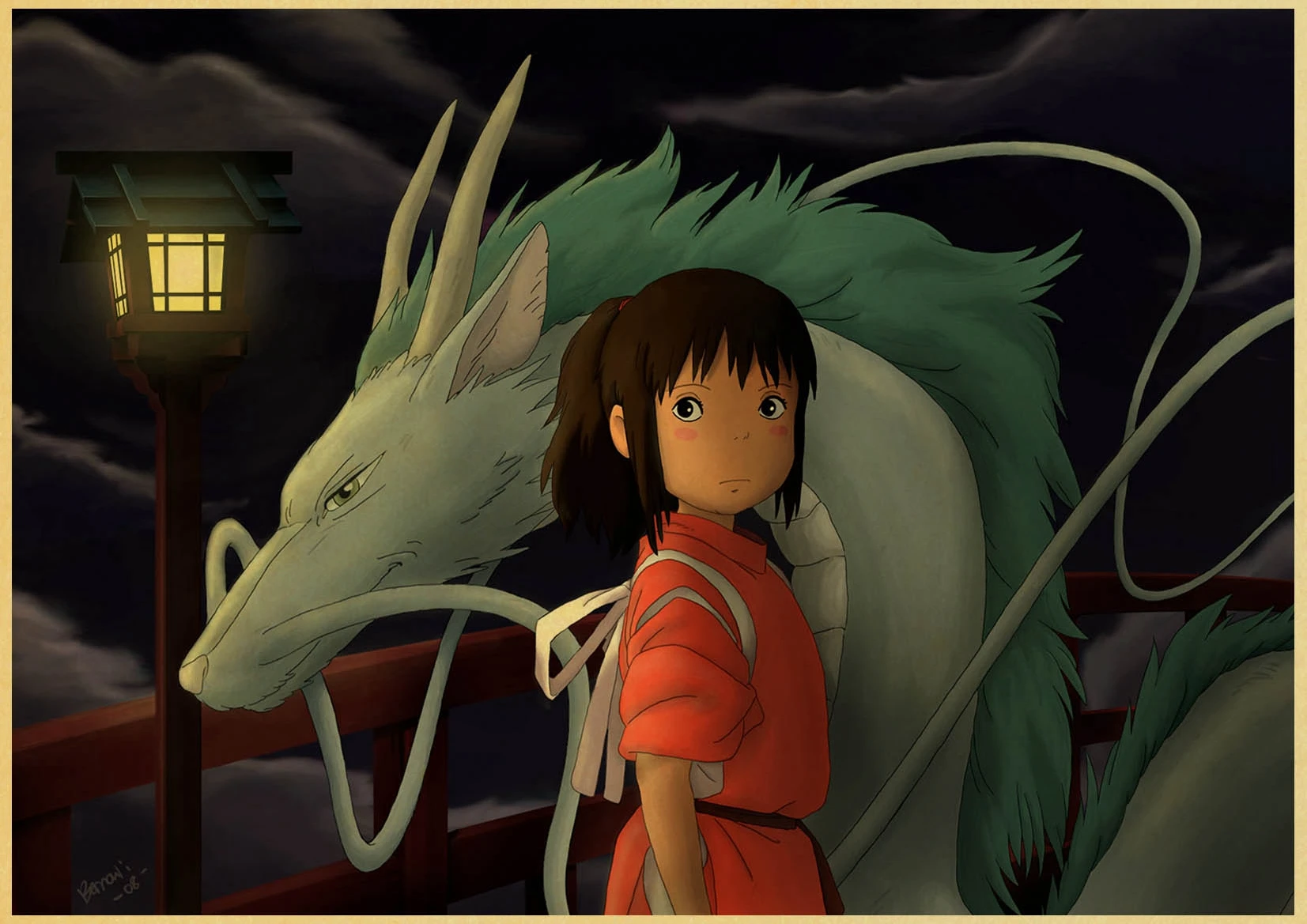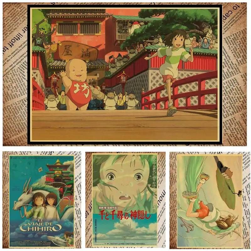 Ретро-постеры Унесенные призраками Хаяо Миядзаки Постер Мультфильма фильма, Крафтовая бумага, наклейки для рисования, настенная живопись, напечатанное рисование