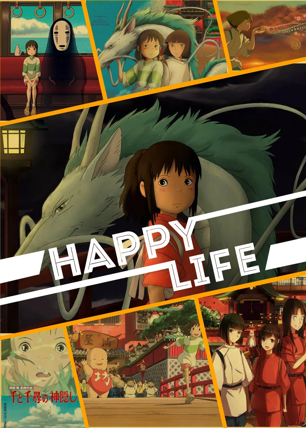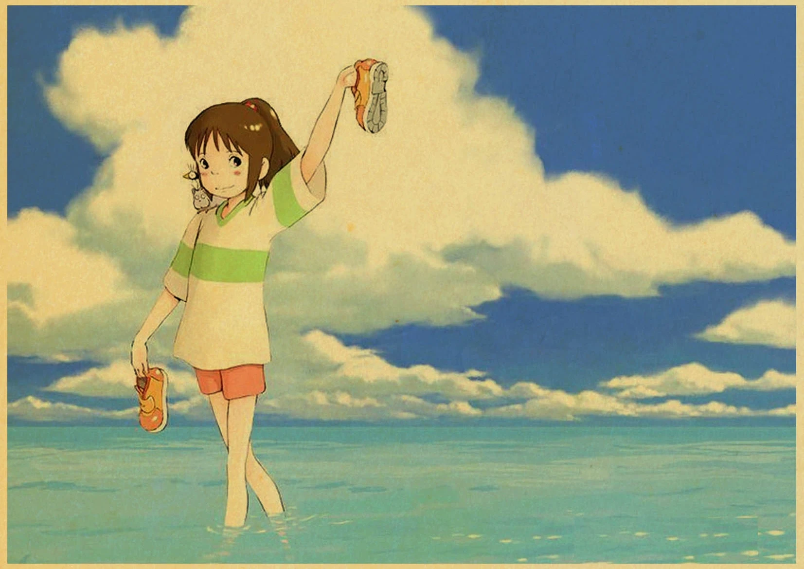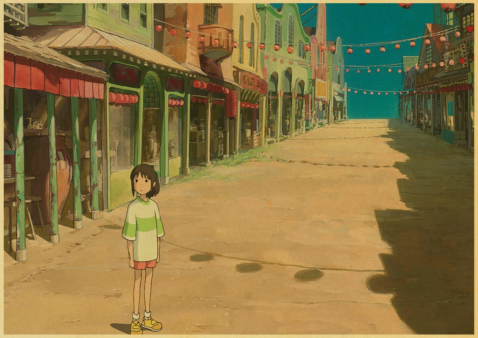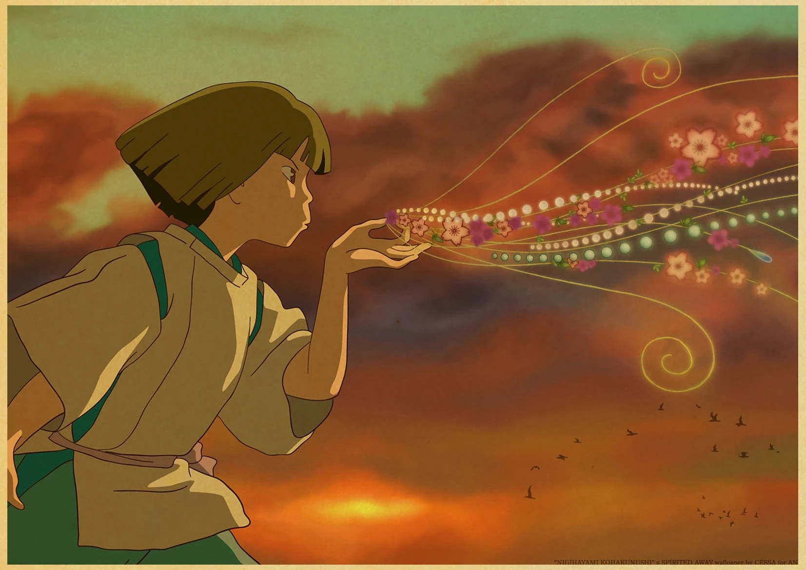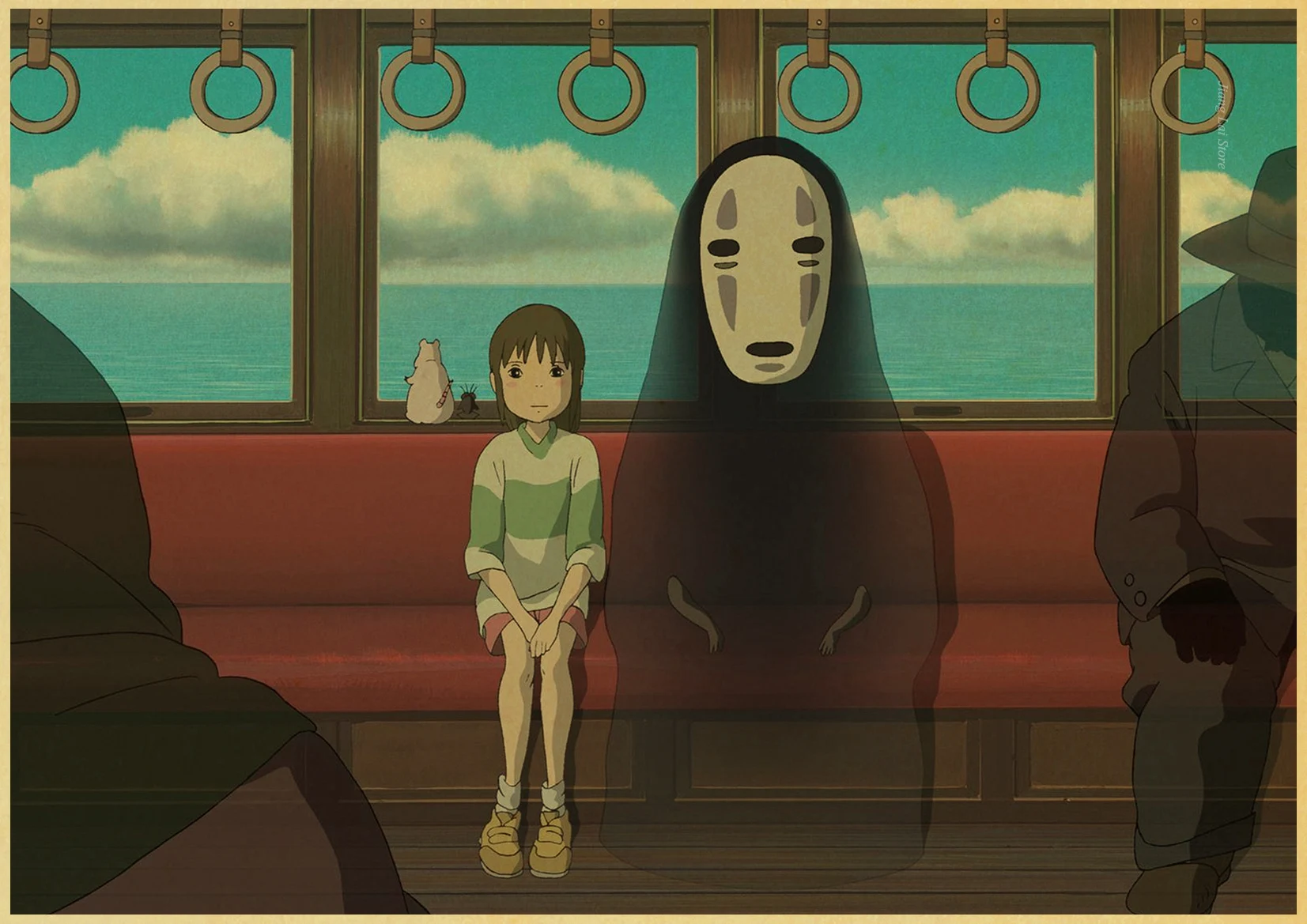 Ретро-постеры Унесенные призраками Хаяо Миядзаки Постер Мультфильма фильма, Крафтовая бумага, наклейки для рисования, настенная живопись, напечатанное рисование