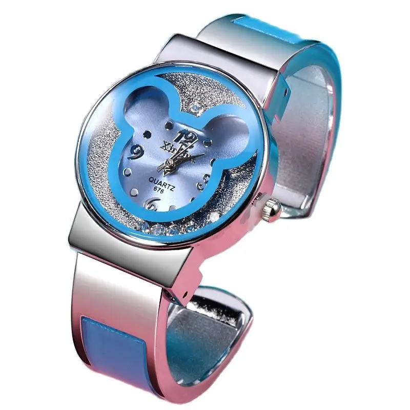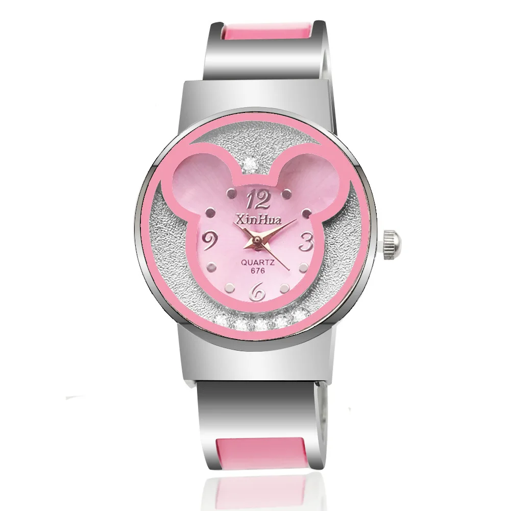 Новинка 2021, модные наручные часы с браслетом Микки Мауса, Женские Аналоговые часы, милые наручные часы Стразы для девушек, Женские повседневные кварцевые часы