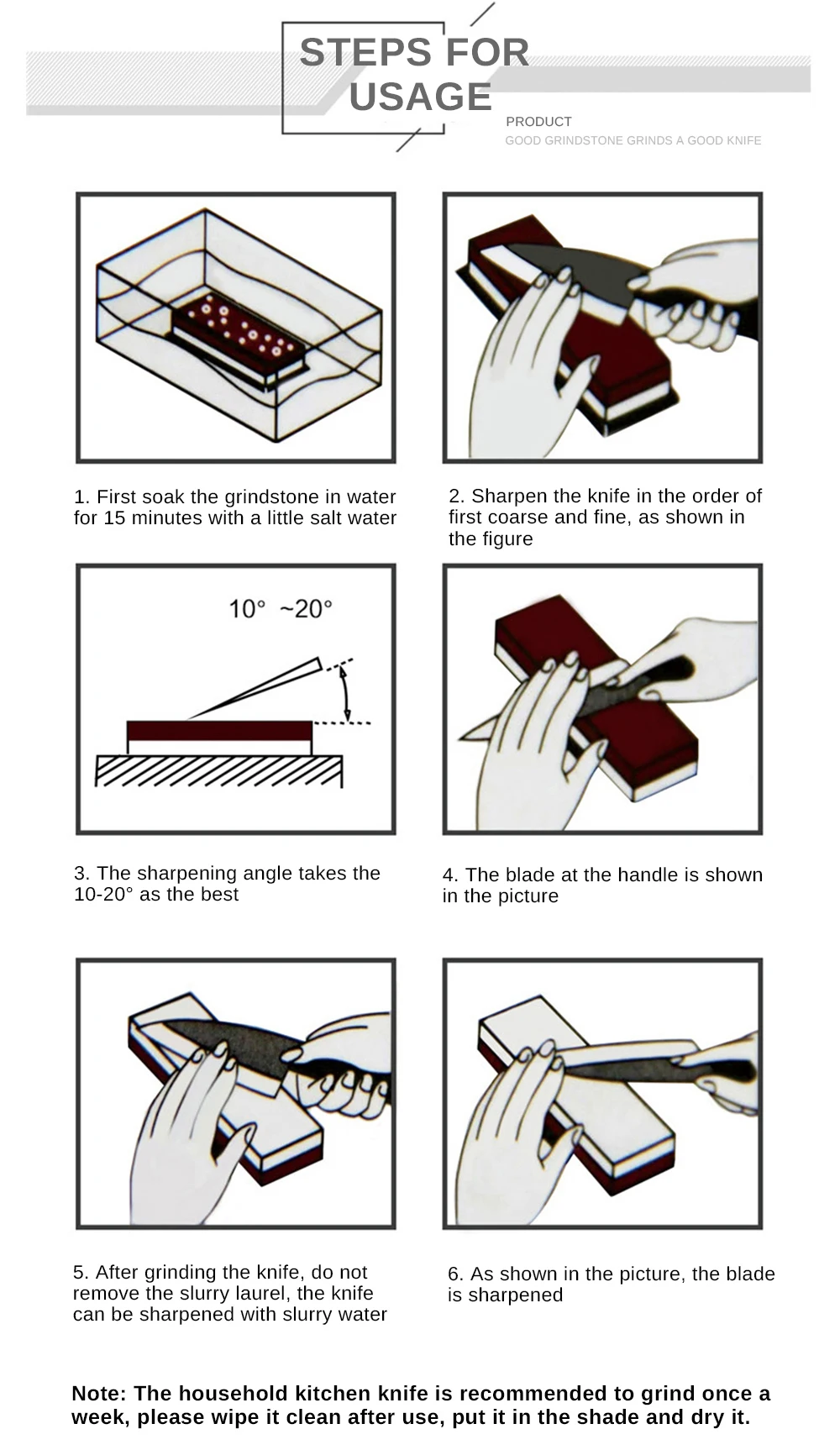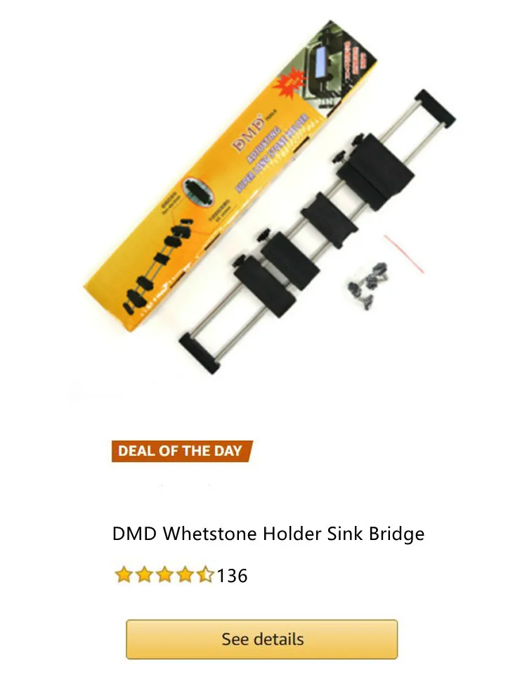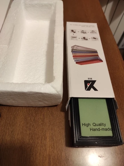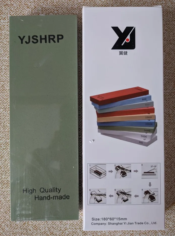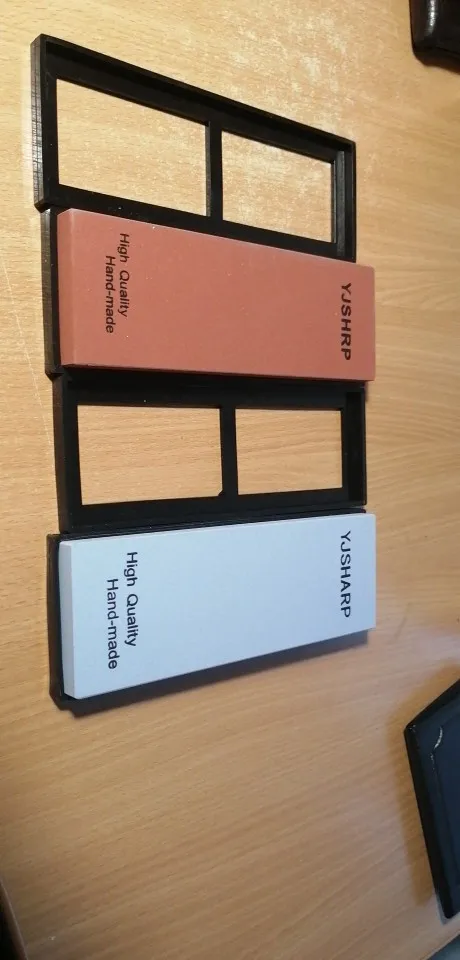 Камень хорошего качества, но гритность я пока не проверял. Имеются две обхватывающие резинки, так что можно просто так класть на стол и точить, скользить не будет. При доставке каждый камень обернут в целлофан, надеты резинки, упакован в картонную коробочку, которая помещена в пенопластовый бокс. Очень быстрая доставка - 3 дня в город Рязань (Россия), наверное доставка со склада в где-нибудь Москве.