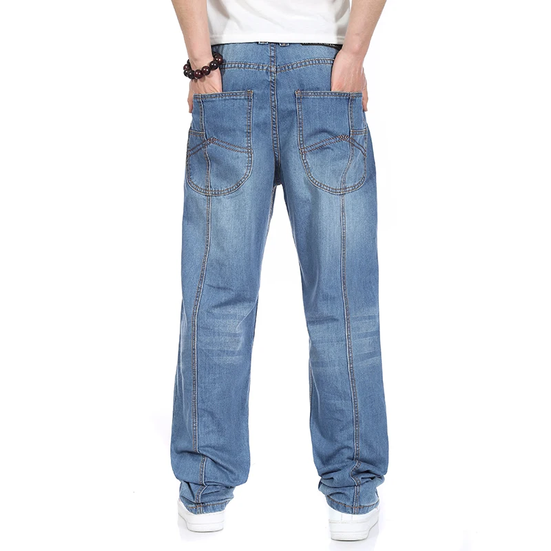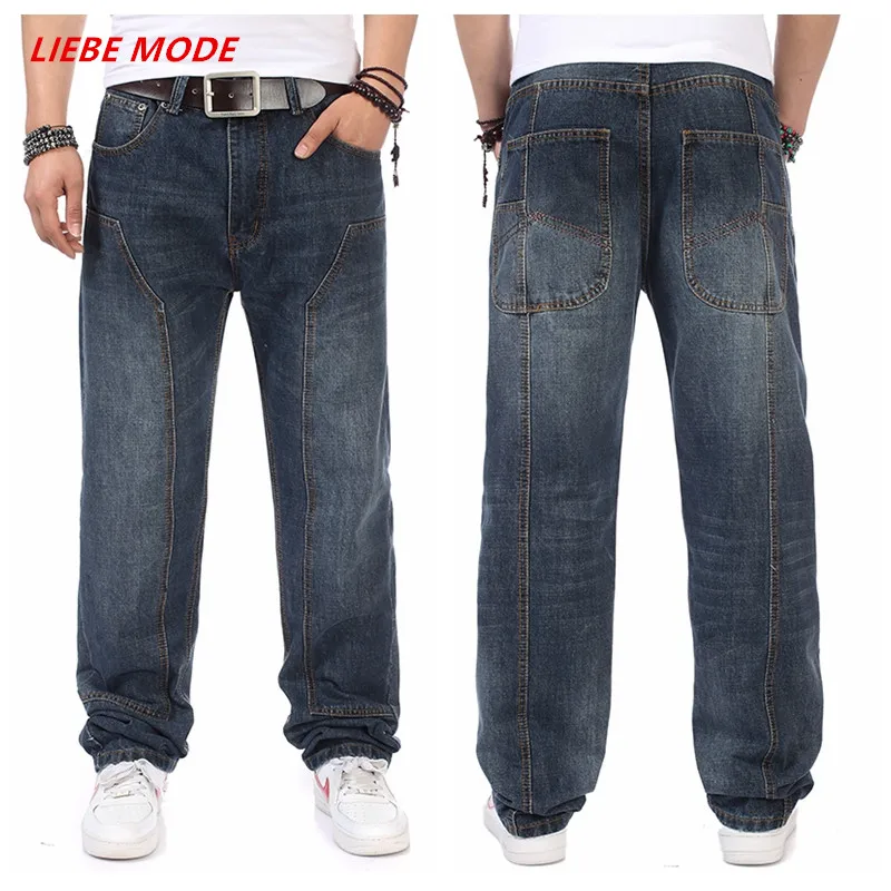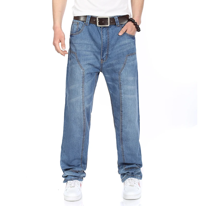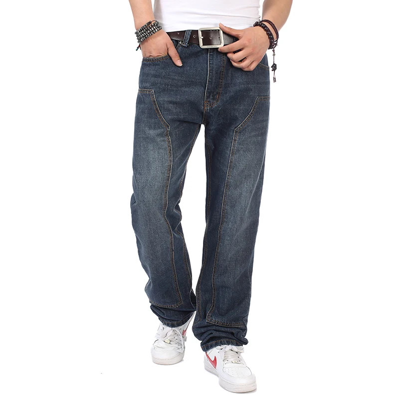 На осень и весну размера плюс Для мужчин s мешковатые штаны в стиле хип-хоп брюки-Клеш Джинсы для Для мужчин прямые свободный крой джинсы Homme брюки с широкими штанинами мужской 44 46