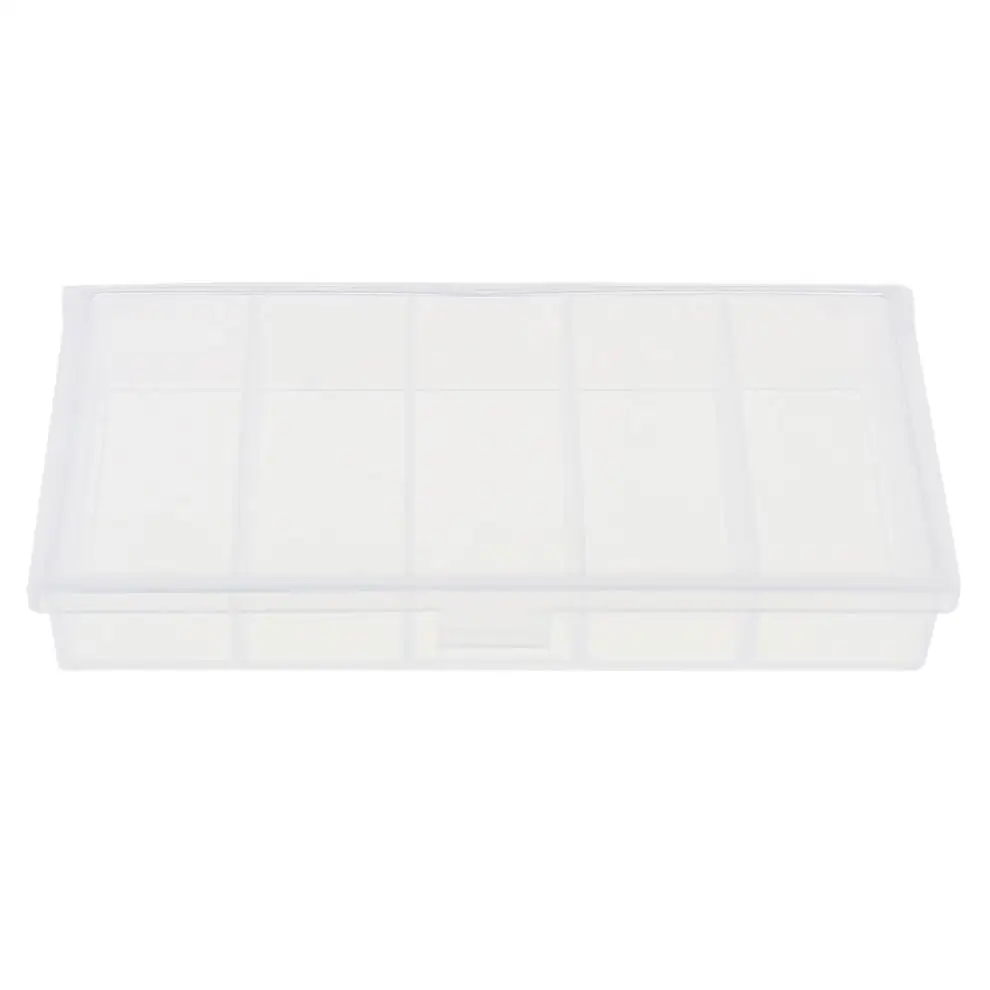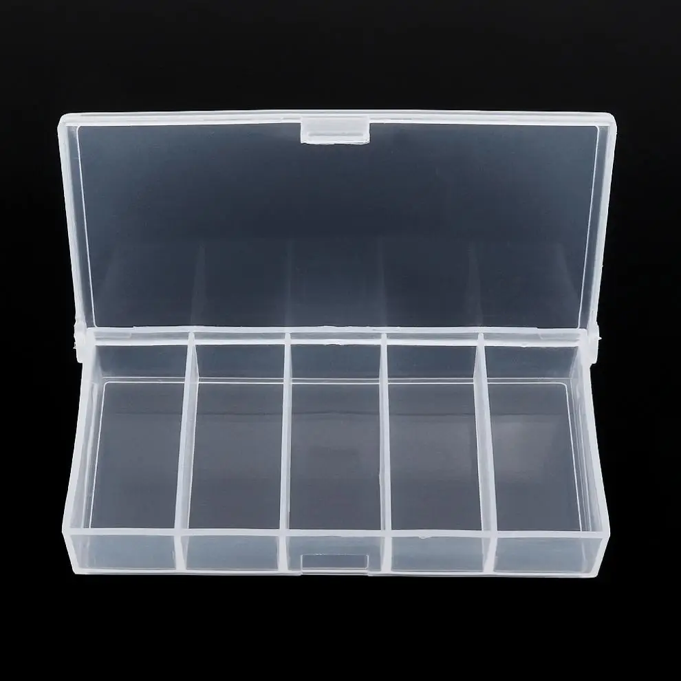 Особенности:-Пищевой ПП Материал принимается, экологически чистый, здоровый и прочный.-Изготовлен из прозрачного материала, легко увидеть, что находится в коробке.-Маленький и легкий светильник.-Он имеет пять небольших квадратов для легкой сортировки и хранения.