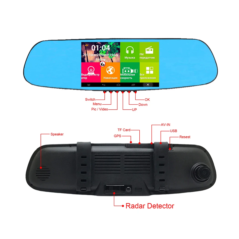 1 x Автомобильный видеорегистратор зеркало GPS навигация