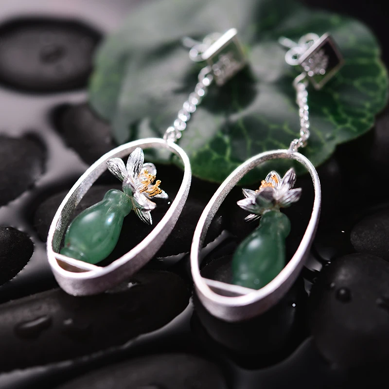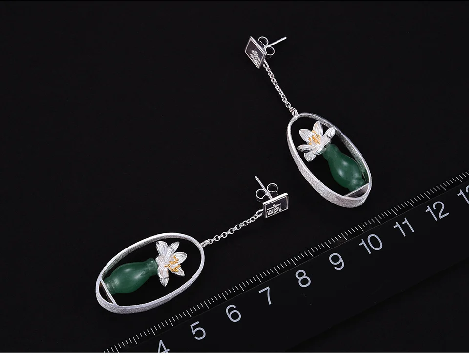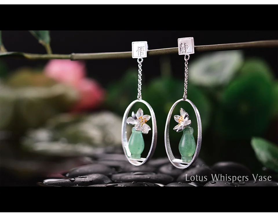 Lotus Fun Реальные Стерлингового Серебра 925 Природный Камень Творческий Изысканные Ювелирные Изделия Ручной Работы Лотоса Шепчет Серьги для Женщин Brincos