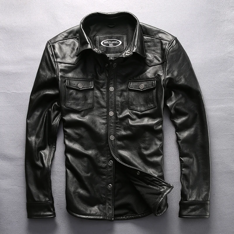 Рубашка мужская из воловьей кожи, первослойная модная городская мот...