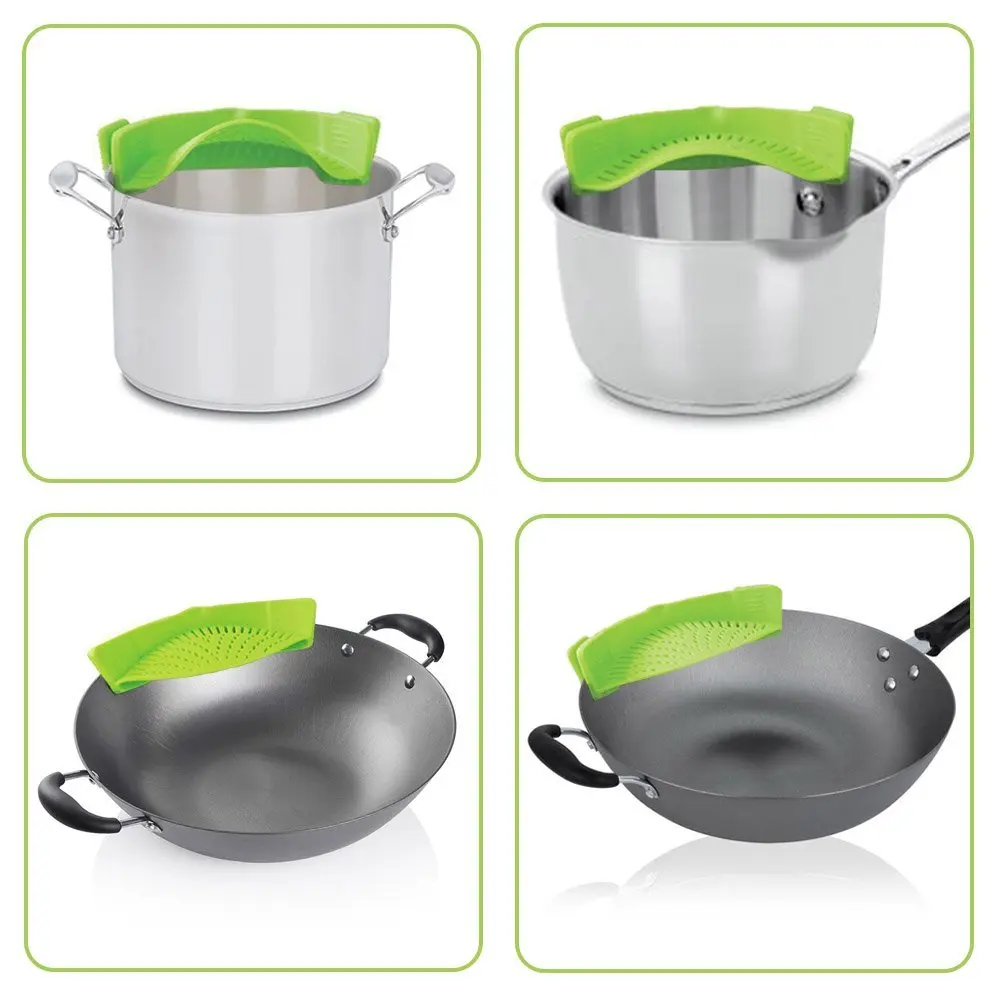 Дуршлаг для кастрюли достаточно гибкий, чтобы поместиться практически на все кастрюли, сковородки и миски.