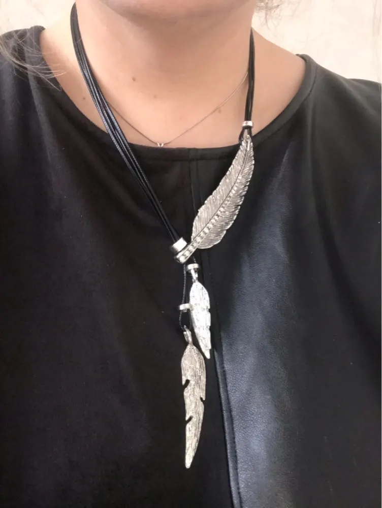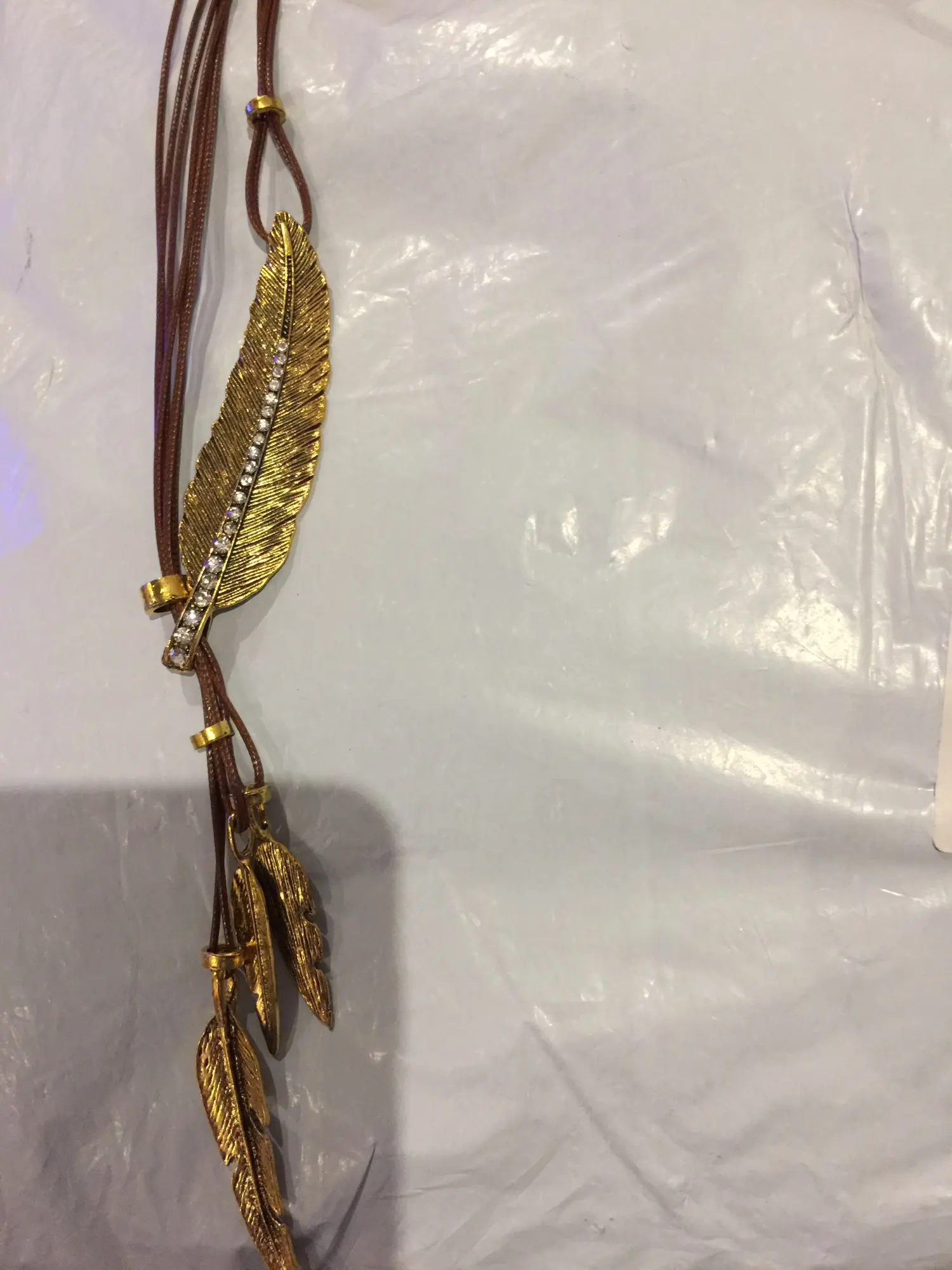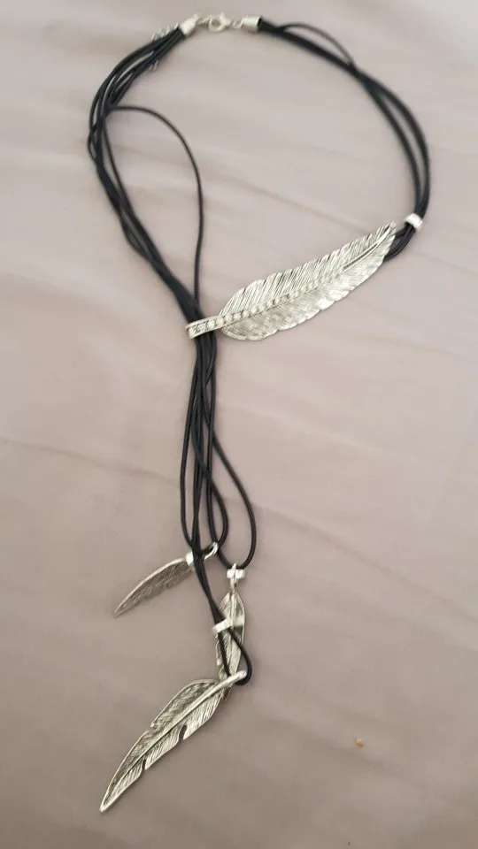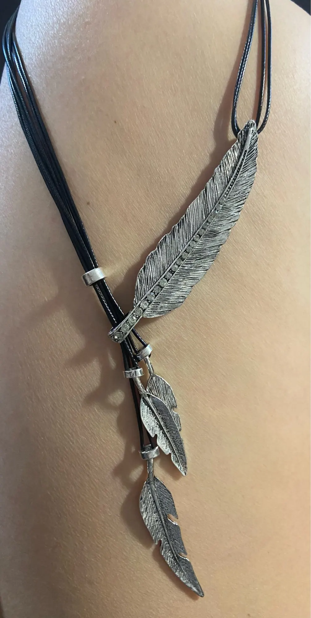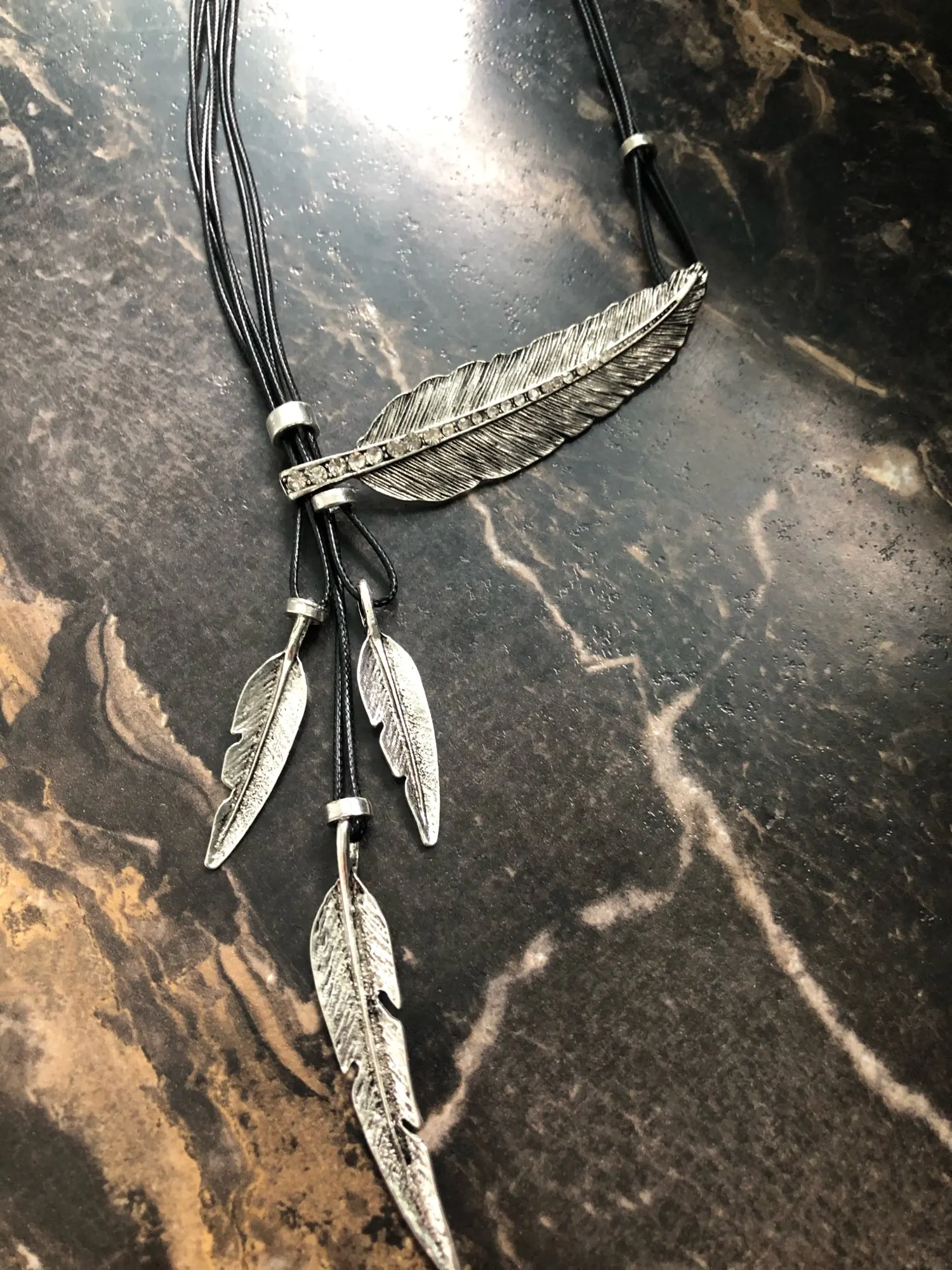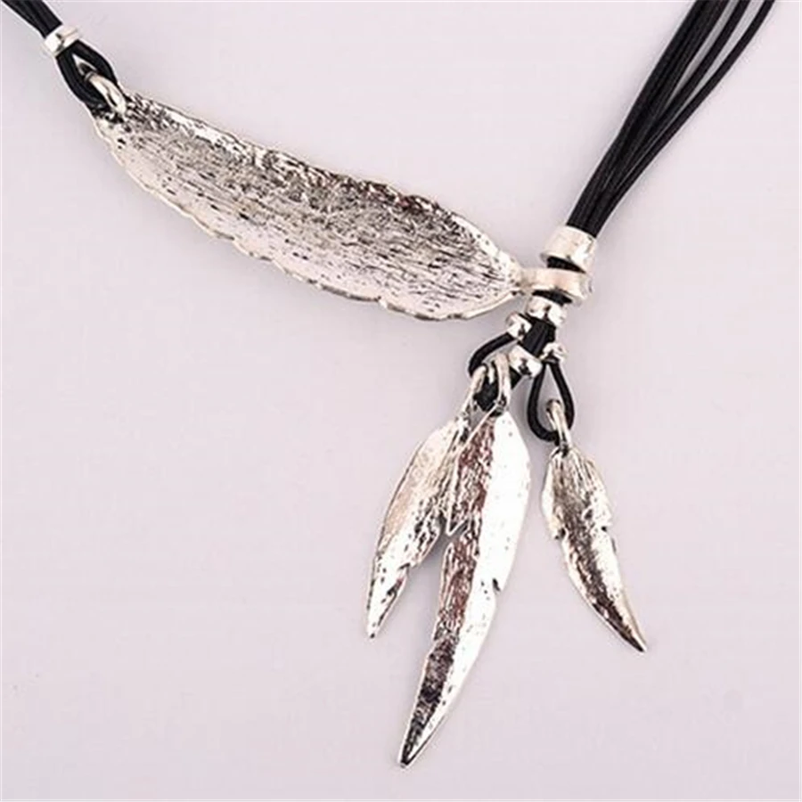 Женское Ожерелье с перьями, винтажное ожерелье из веревочной кожи, массивное украшение, бижутерия