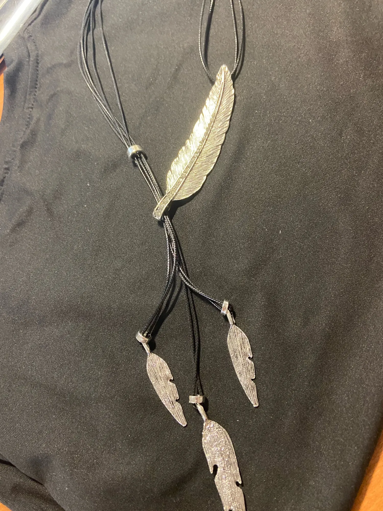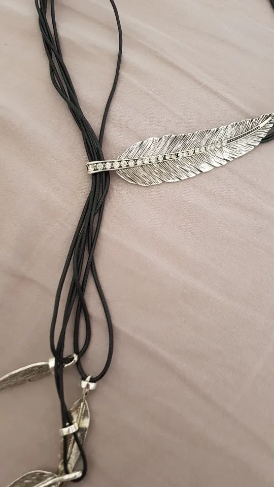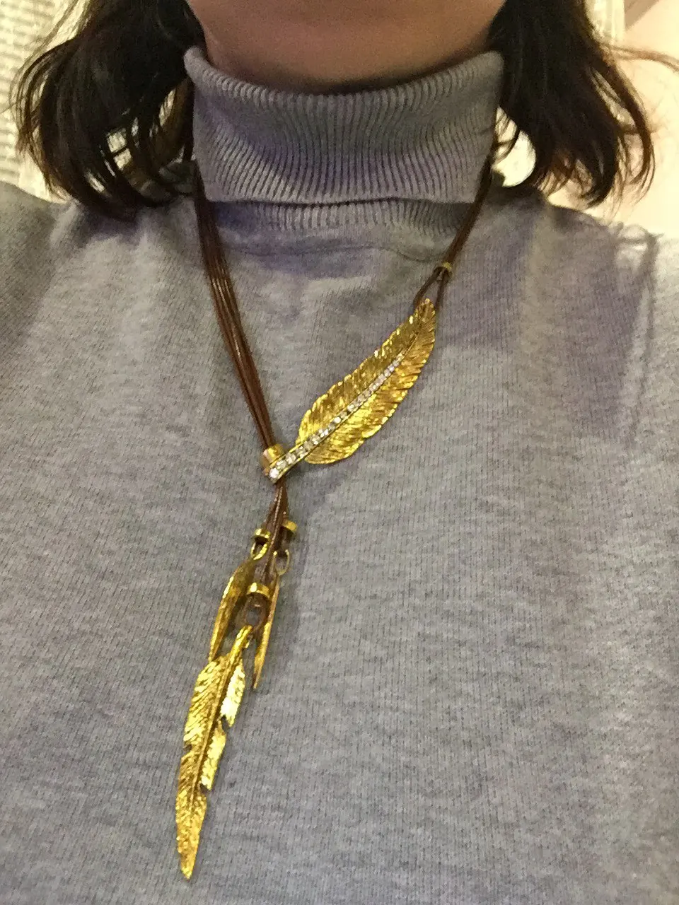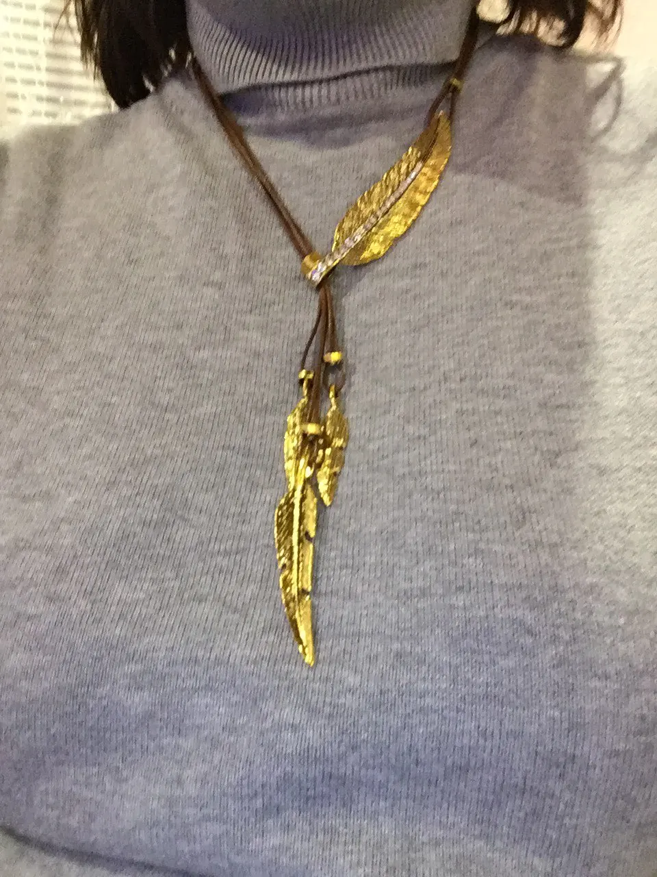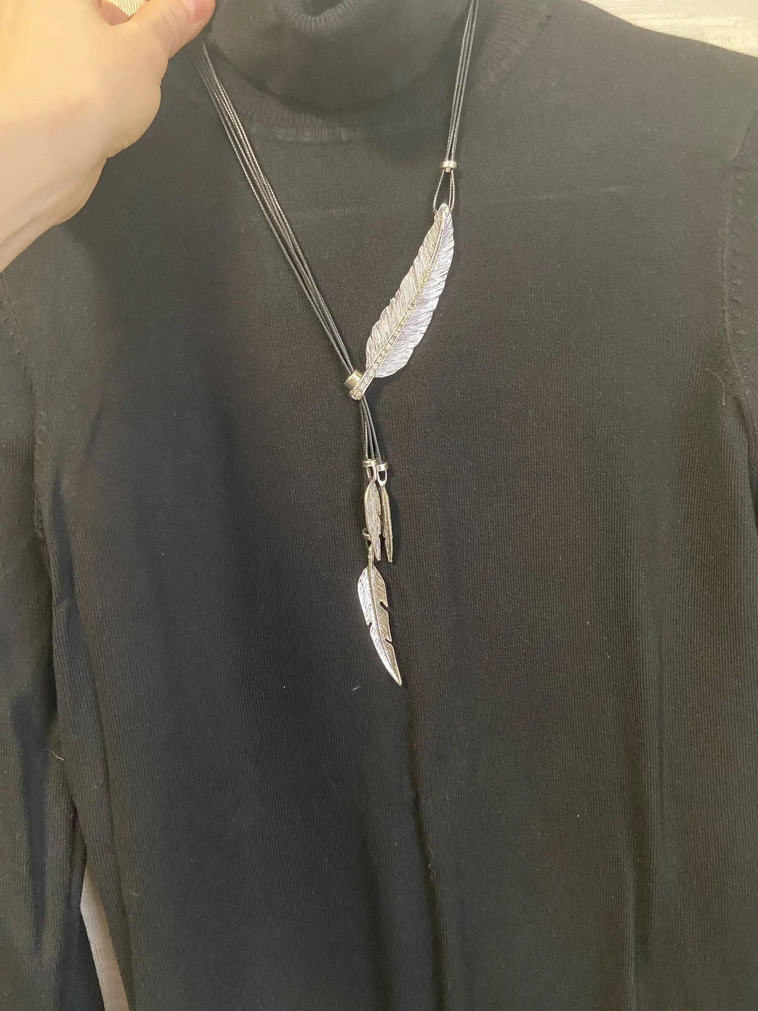 Женское Ожерелье с перьями, винтажное ожерелье из веревочной кожи, массивное украшение, бижутерия