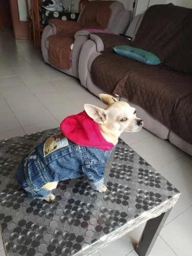 Очень хорошее качество, покупайте размер XL, и я маленький, мой щенок выглядит как chavo del 8 haha