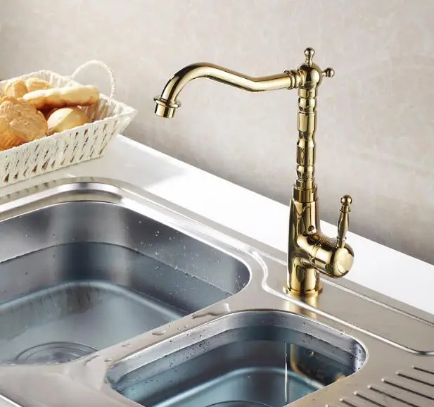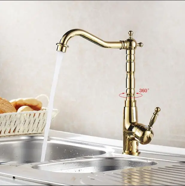Модный высококачественный латунный Смеситель для раковины, с золотым покрытием, вращение на 360 градусов, для горячей и холодной воды, без свинца, безопасный кухонный смеситель для раковины, бесплатная доставка