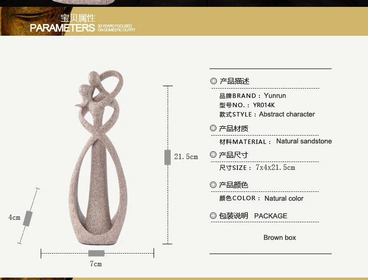 Статуэтка для влюбленных из смолы, ручная работа, креативный свадебный подарок, украшение для дома 7x4x21,5 см, природный песчаник
