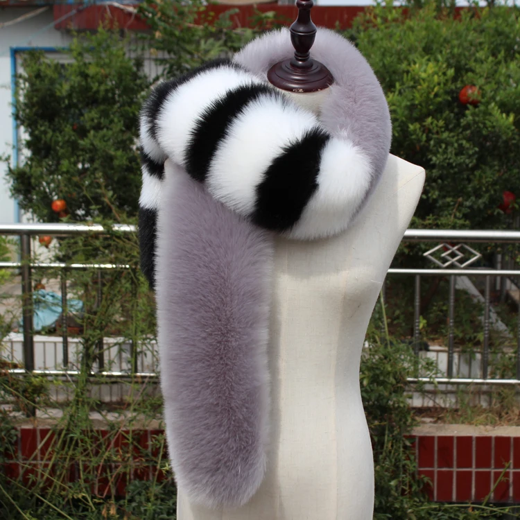 Потрясающий высококачественный длинный шарф из искусственного лисьего меха, черный, белый, серый, в полоску, в стиле пэчворк, роскошный пушистый модный теплый меховой шарф icon star icon star icon star icon star icon star