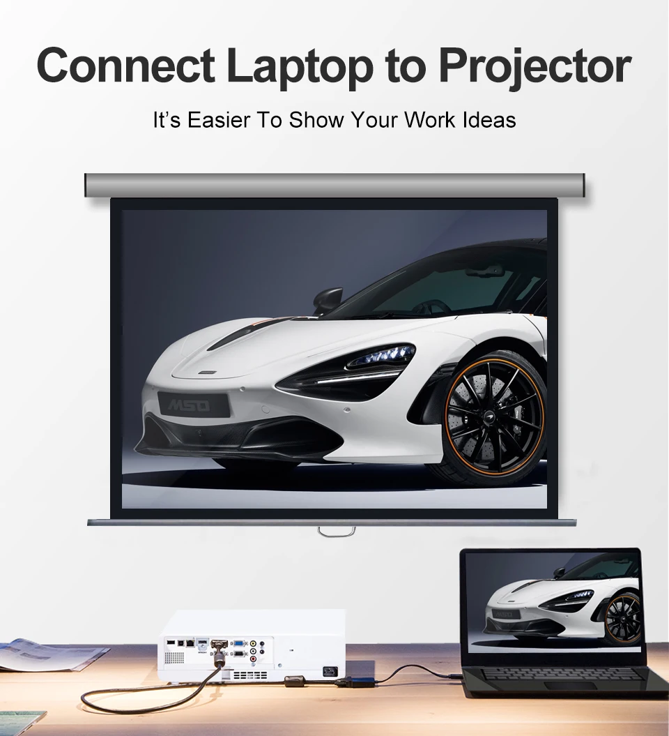 Дошло быстро, всё работает как заявлено. Брал для школы, подключили ноут с HDMI к проектору с VGA