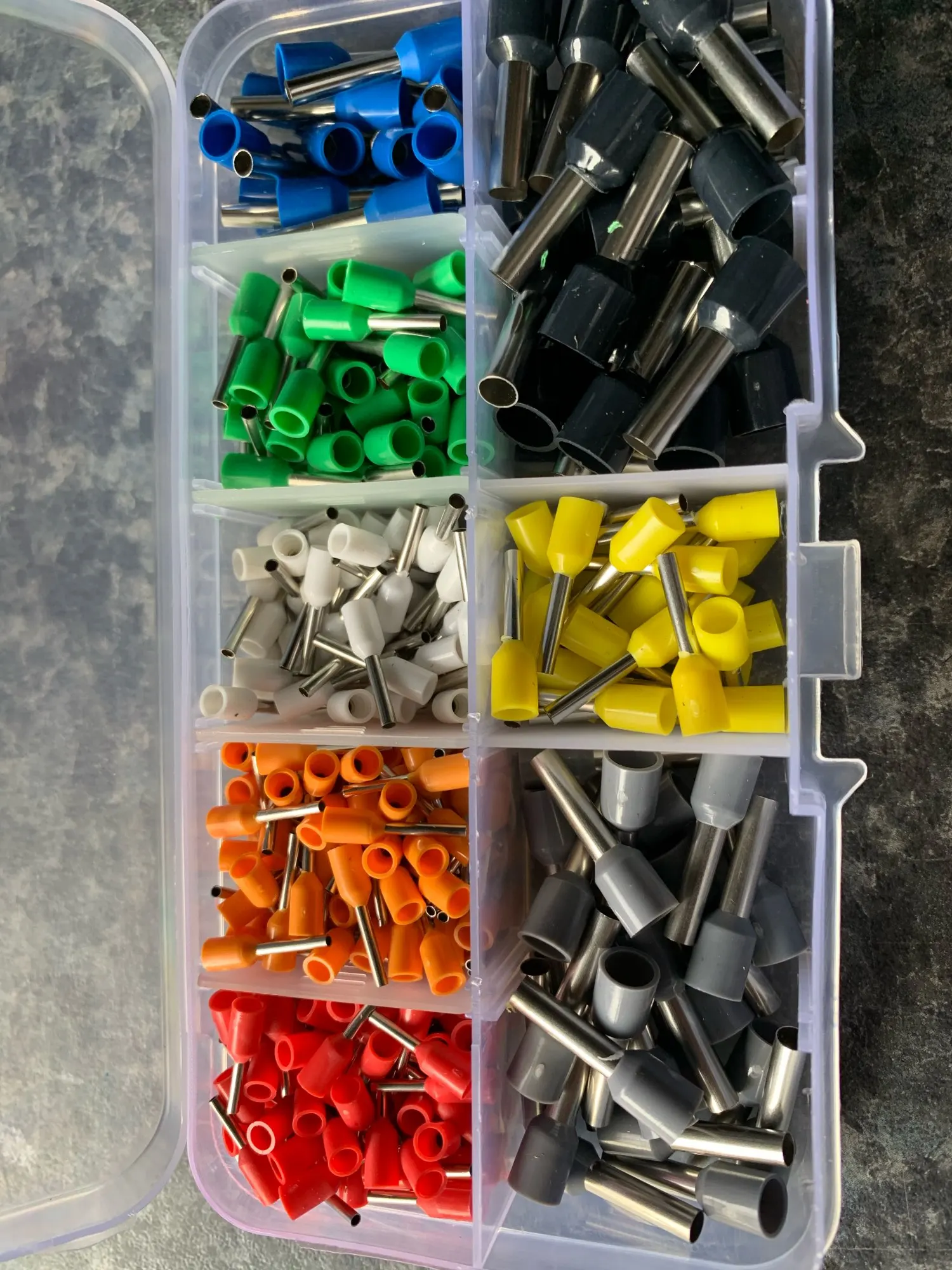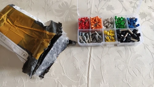 Заказал 29.11.2020 г. Набор изолированных концевых зажимов 400 шт. AWG 22 - 10 в "Region 56"посылку доставили до почтового отделения за 13 суток очень быстрая доставка. Упаковано в пакетик серого цвета в нем картонная коробка, прибыло все в целости и сохранности. Хорошие концевики провод держат надежно. Всем приятных покупок. Рекомендую для покупок магазин.