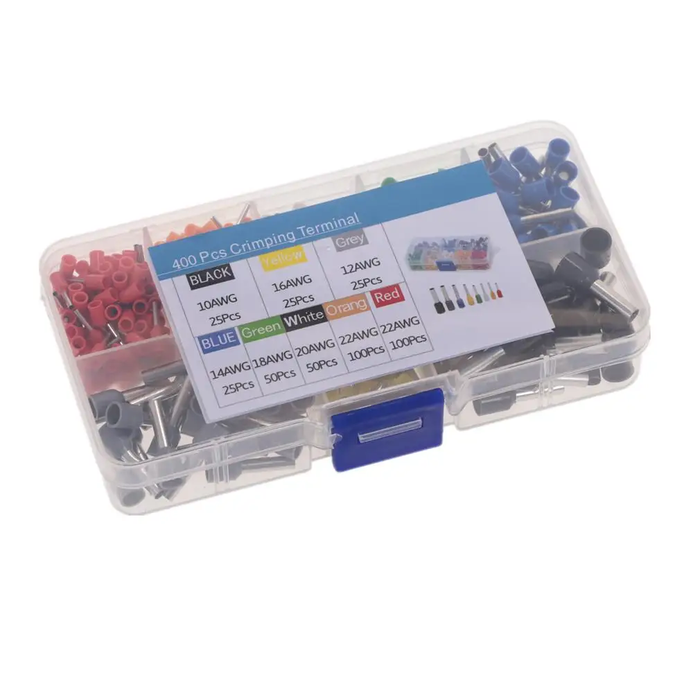 400 шт.компл. AWG 22 - 10 изолированный штыревой разъем штыревой конец комплект обжимных соединителей для проводов и медных проводов