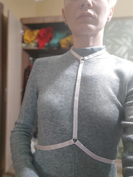 Товар як на фото. Все підійшло.Ремінці на шиї і під грудьми регулюються.