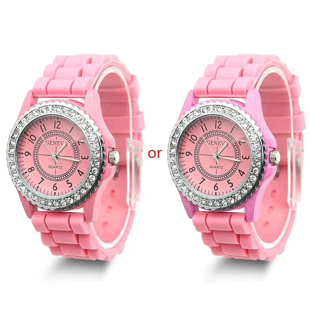 1PC 14 colors Fashion Silicone GENEVA Watch Hot Selling Women Dress Watch Women Rhinestone Watches