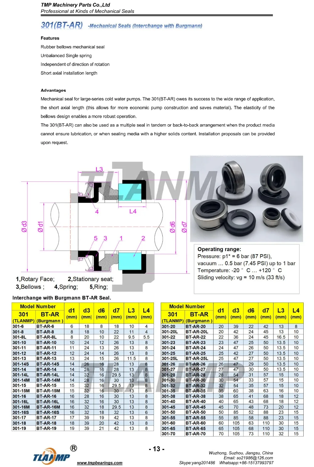 301-15 , 301-15 м (стандартная) резиновые ремни TLANMP механические уплотнения для водяных насосов Эквивалентно фотомагнитам