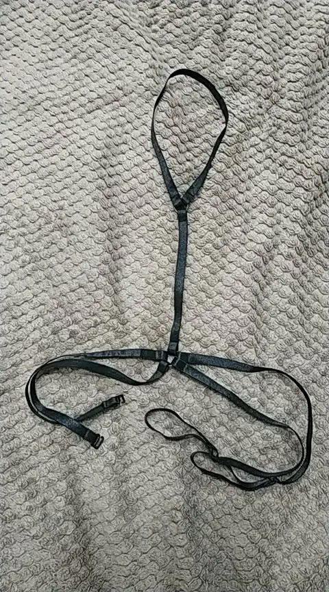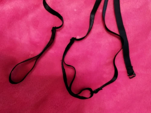 Ленты из материала как лямки от бюстгальтера. Сшито ровно, без запаха. Подошёл идеально, можно регулировать размер, кроме части что на шее. Смотрится эффектно, как с бельём, так и на голое тело.