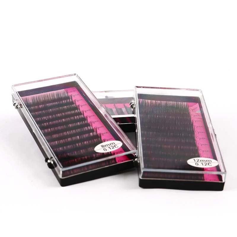 C завитые 0,12 мм розовые открытые синтетические волосы Индивидуальные Черные Накладные ресницы для наращивания натуральные накладные ресницы 12 полосокупаковка