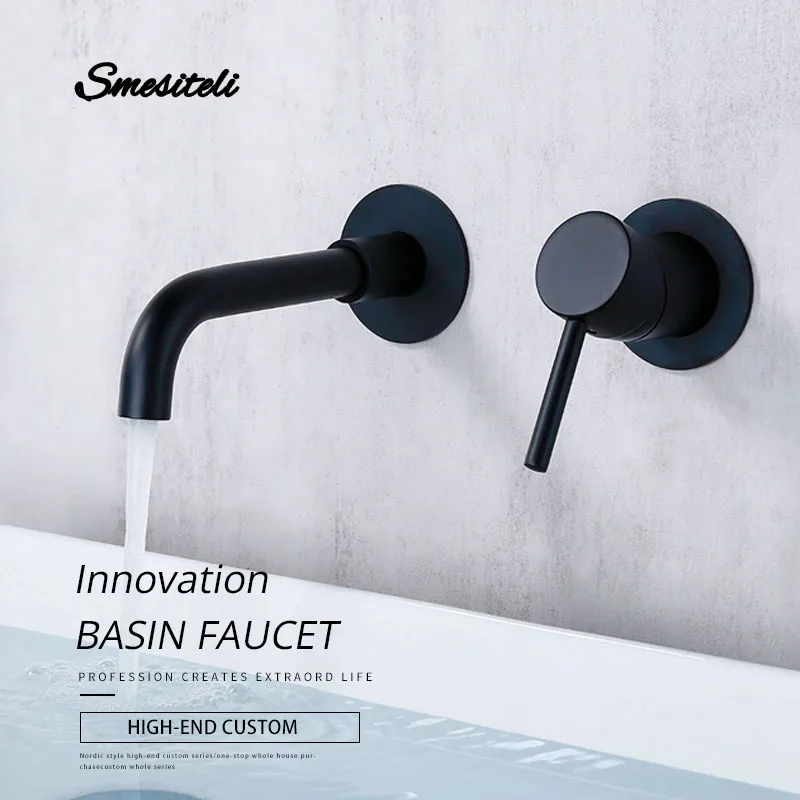 Смеситель для раковины ванной комнаты, кран для раковины, настенный латунный матовый черный с одной ручкой, набор горячей и холодной воды, белый, розовое золото