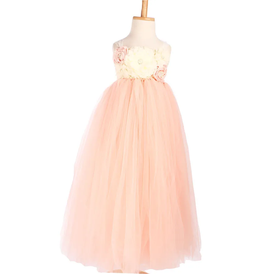 Кружевное платье-пачка для девочек, персикового цвета и цвета слоновой кости, для свадьбы, дня рождения, вечеринки, фотосессии, TS082