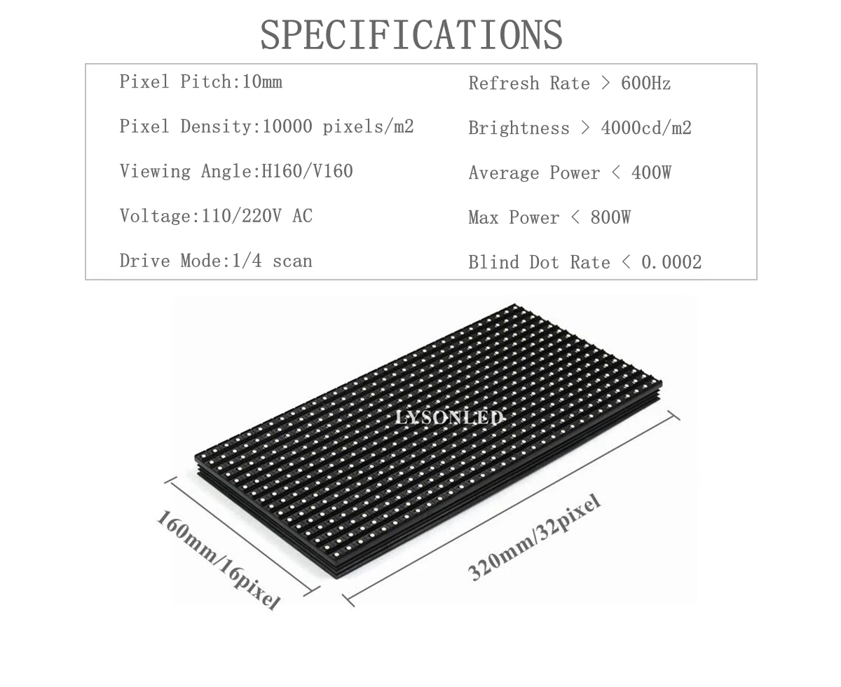 Открытый P10 SMD полноцветный светодиодный модуль видео дисплея 3 в 1 32*16 пикселей 14 сканирования