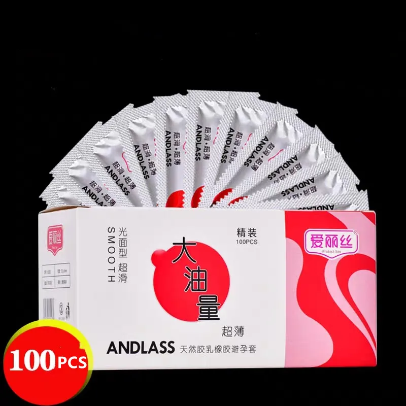 Презервативы ANDLASS 100 шт.лот, гладкие презервативы в фруктовом стиле для мужчин, латексные мужские презервативы для стройного пениса, интимные изделия для взрослых