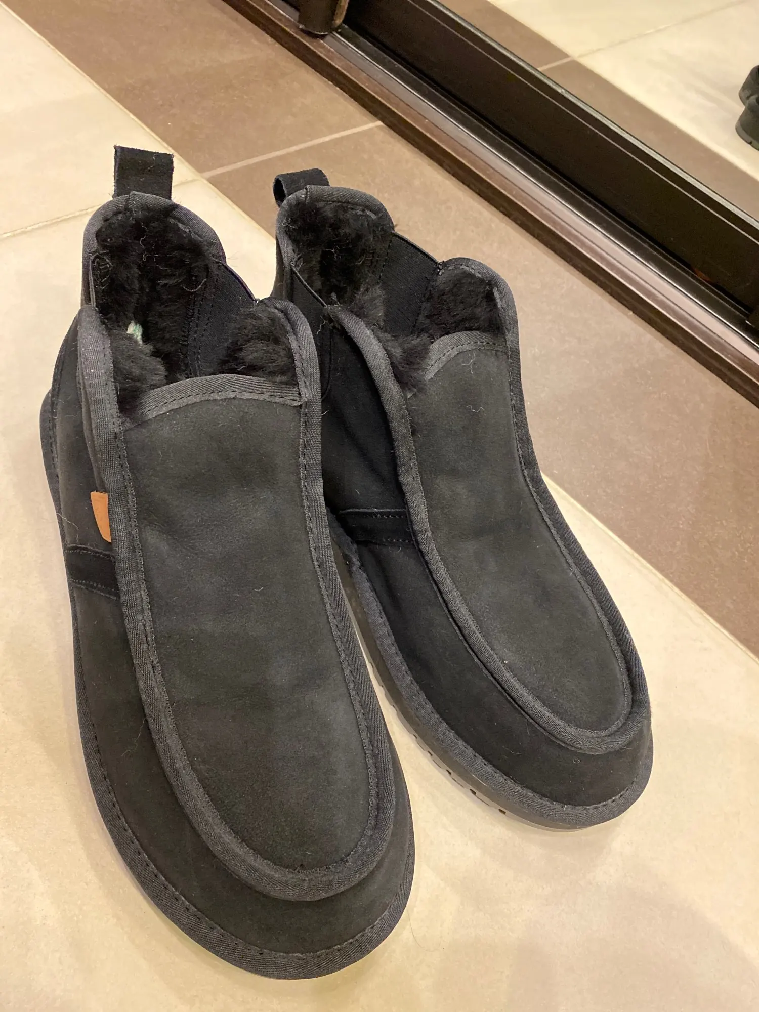 Замша натуральная, мех натуральный плотный и толстый. На 42 взяла 13. За счёт толстого меха очень хорошо сели. Можно на толстый носок. На работу в офис, конечно, не оденешь, но отличные ботинки погулять в парке или на дачу. Доставка за 3 недели до Москвы.