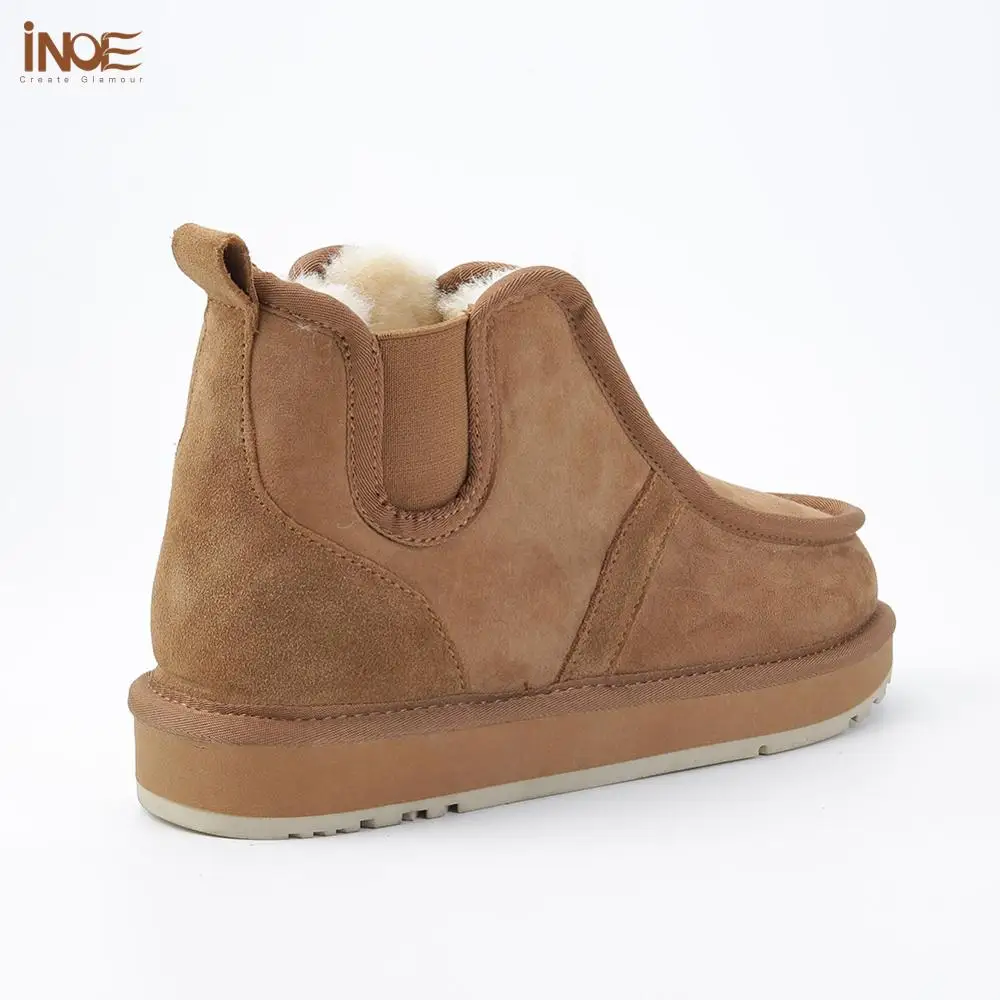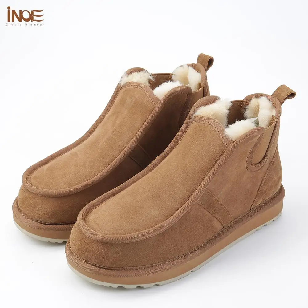 INOE зимние короткие зимние сапоги из натуральной овчины и замши с меховой подкладкой из овечьей шерсти на молнии сохраняющая тепло обувь непромокаемая обувь