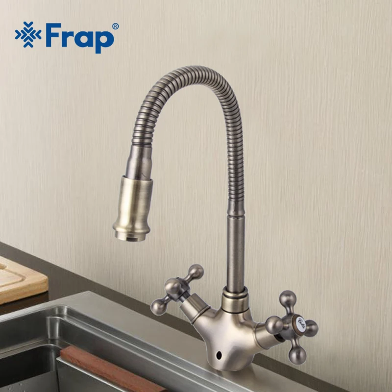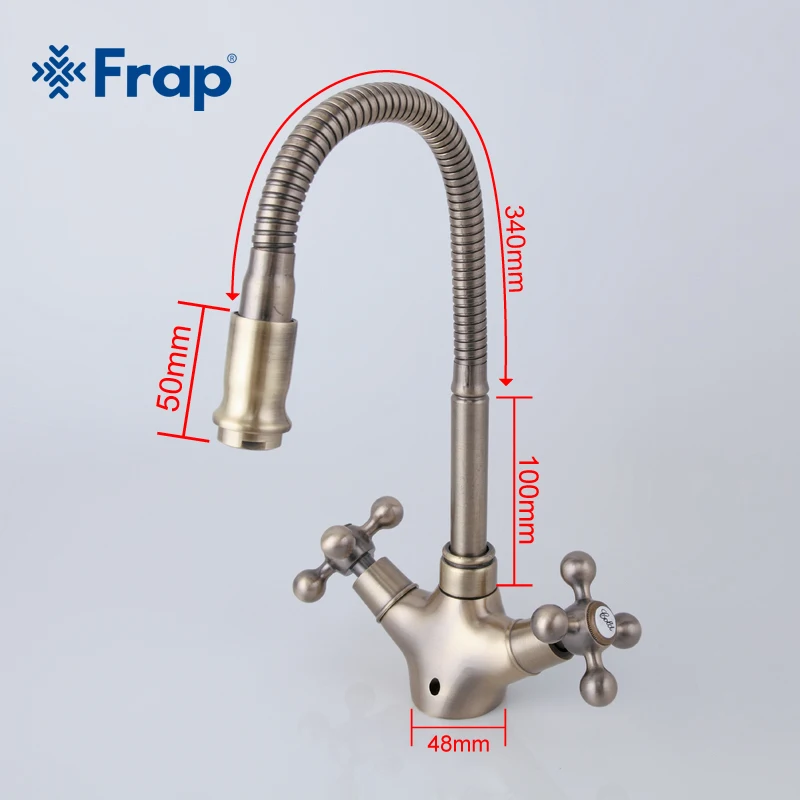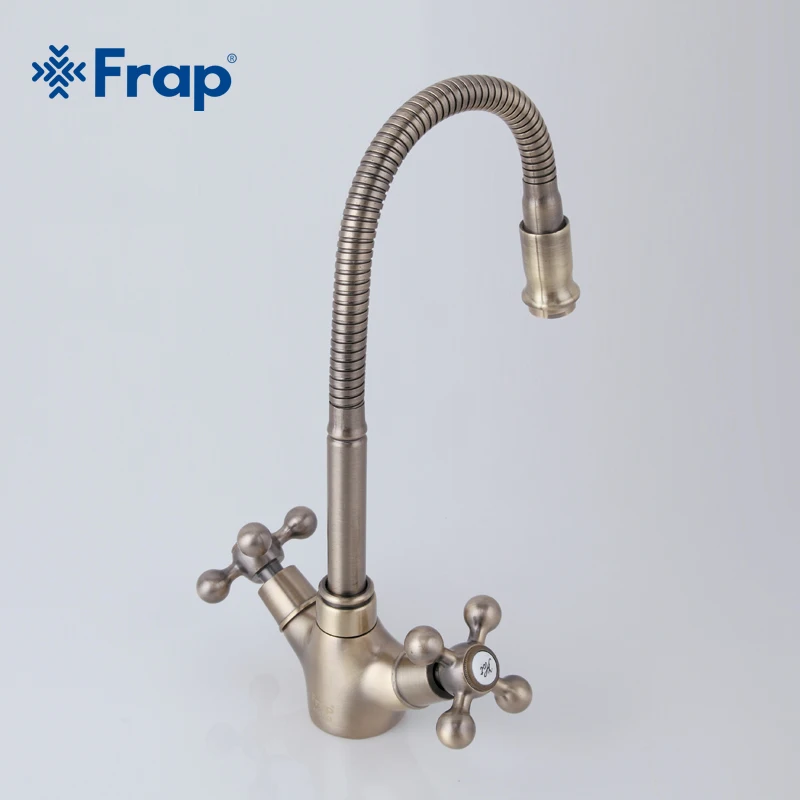 Смеситель для кухни Frap, кран из античной латуни с двойной ручкой, вращение на 360 градусов, для горячей и холодной воды