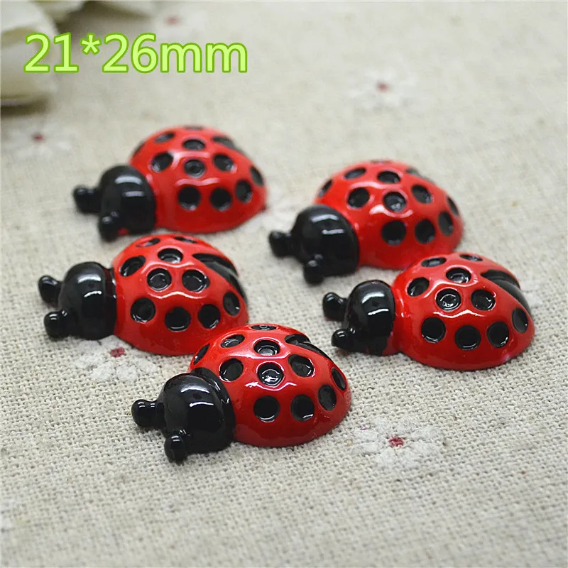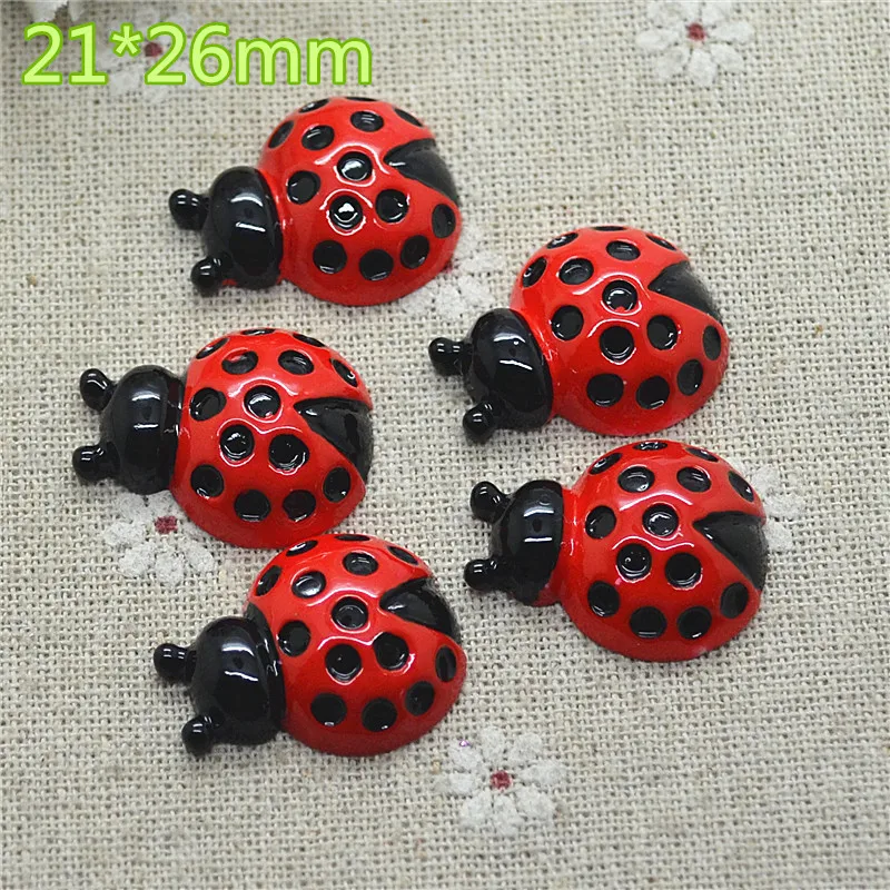 Кабошон из смолы, с изображением божьей коровки, животных, 21x26 мм, 10 шт.