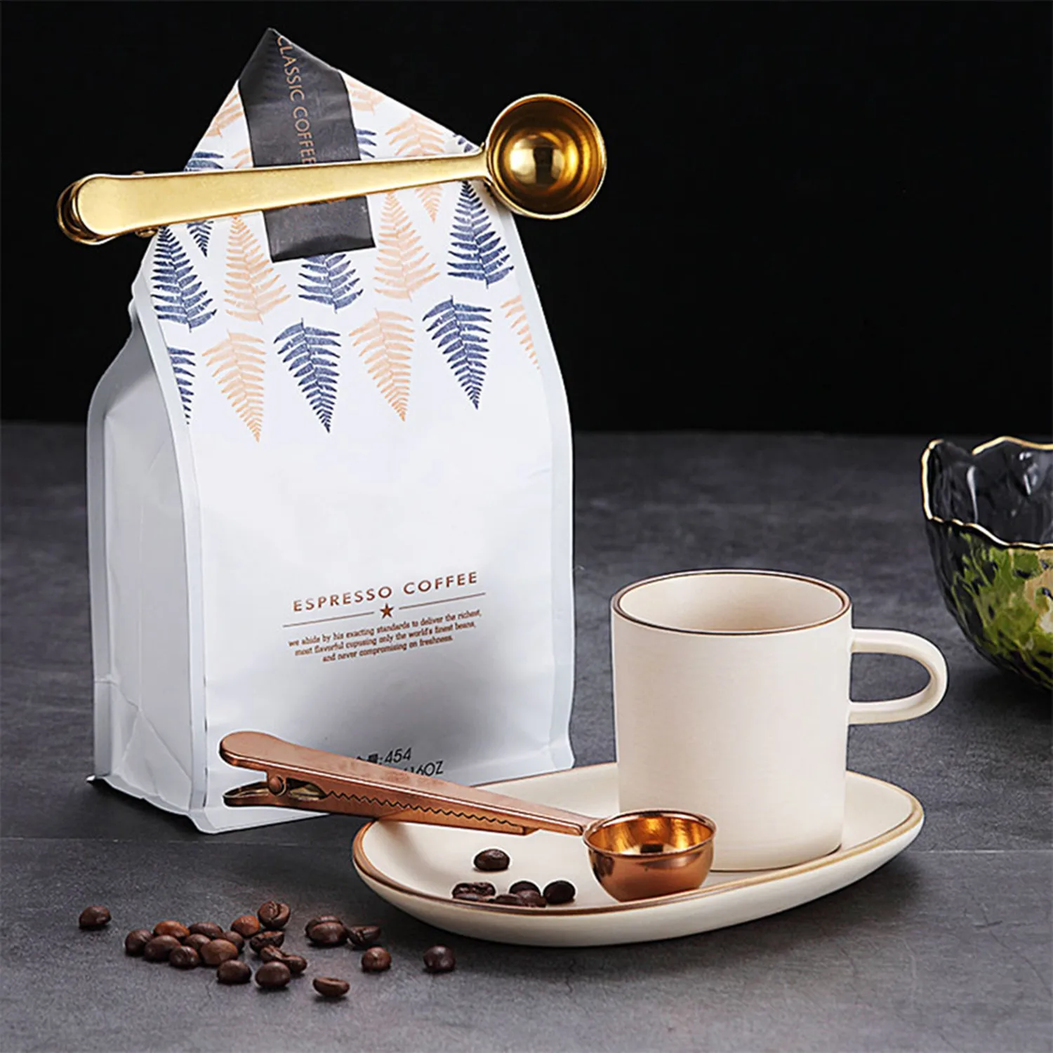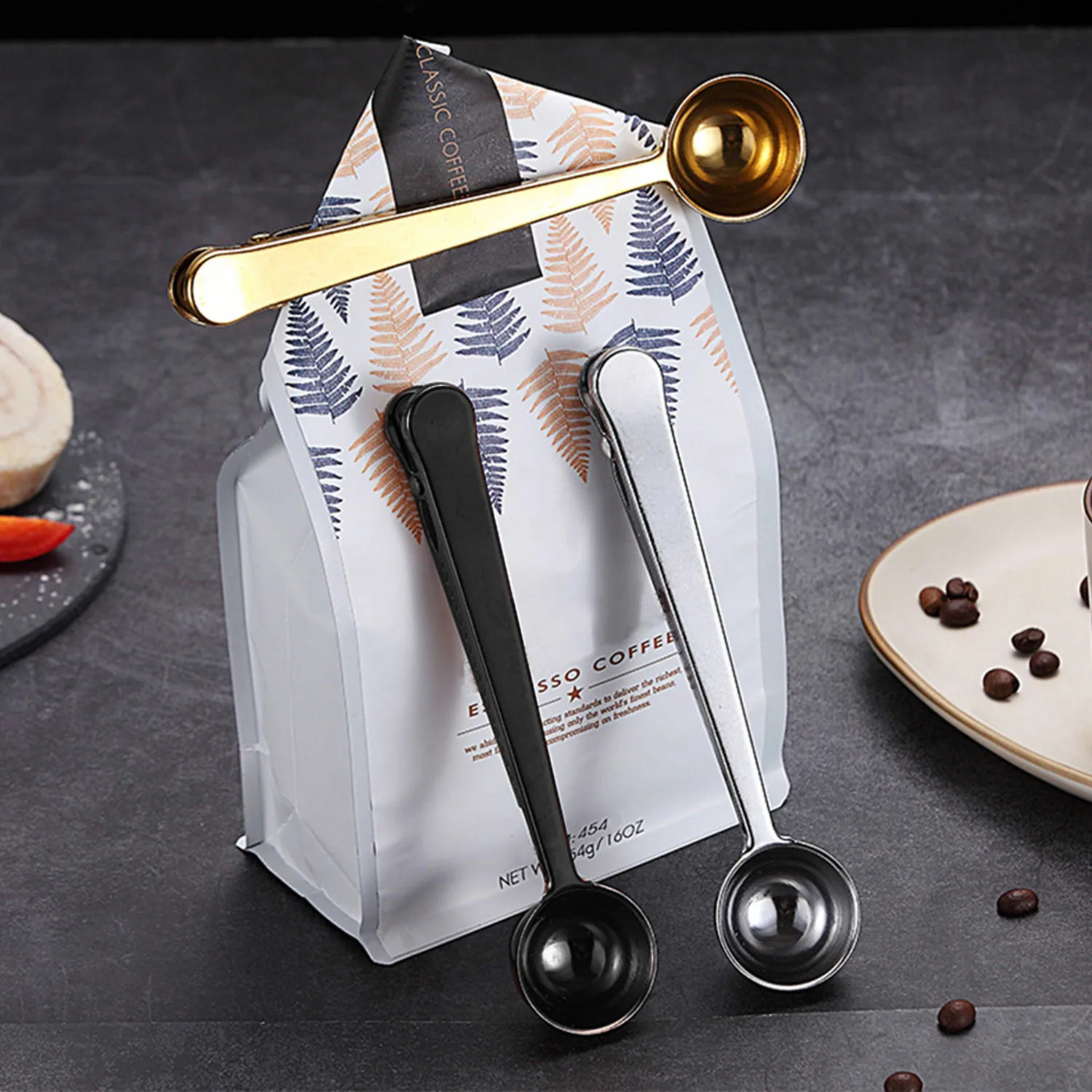 1 шт. 2 в 1 кофейная ложка из нержавеющей стали с зажимом для пакета, измерительная ложка в зернах, ложка для чая, кофе