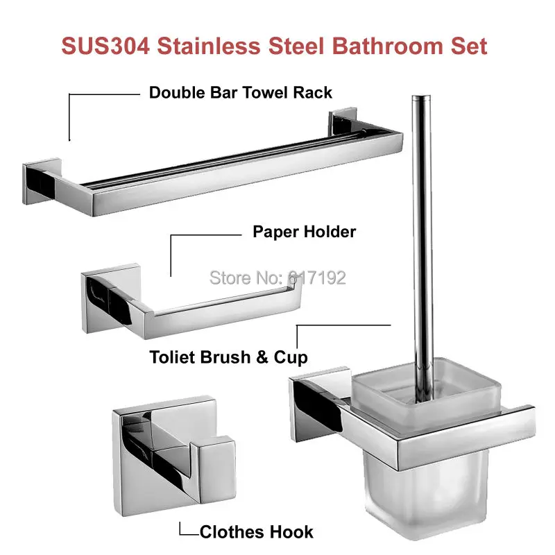 Зеркальный полированный SUS304 набор аксессуаров для ванной из нержавеющей стали, держатель для туалетной бумаги для полотенец, крючок для халата, держатель для туалетной щетки