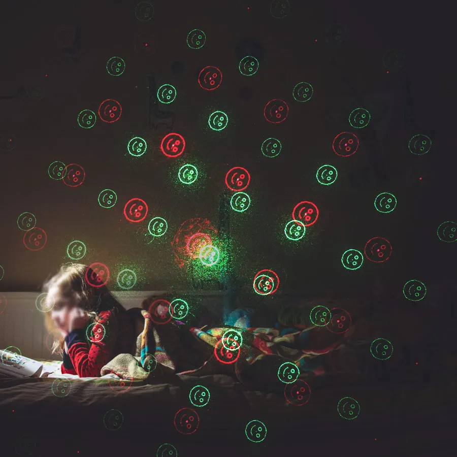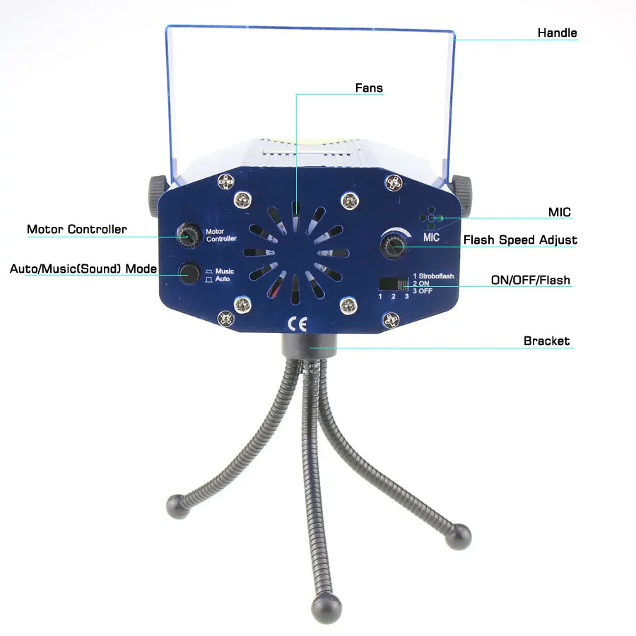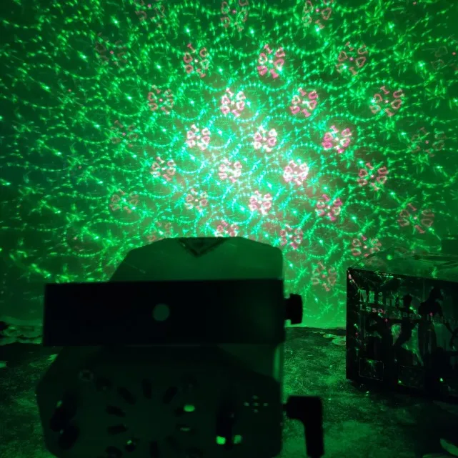 очень понравился проектор. 24 ярких узора. Имеет встроенный микрофон, благодаря которому улавливает такт мелодий и меняет ритм, скорость движения лучей. Источник звука должен иметь хорошие басы и находится на подходящем расстоянии. Также устройство может работать в автоматическом и "вспышка" режиме. Приехало исправным, в полной комплектации, соответствует описанию.