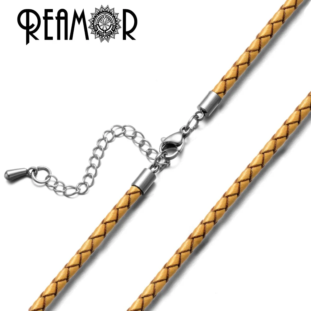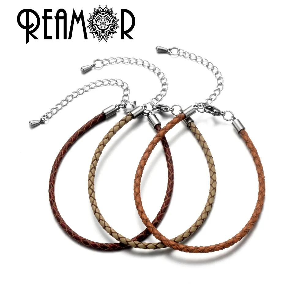 Кожаный плетеный браслет REAMOR, плетеный браслет с цепочкой и застежкой-лобстером, подходит для женщин и мужчин, европейские браслеты с бусинами, сделай сам, украшения