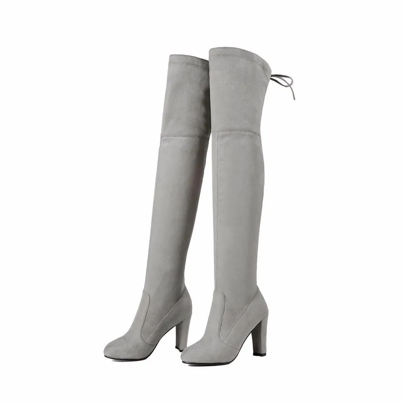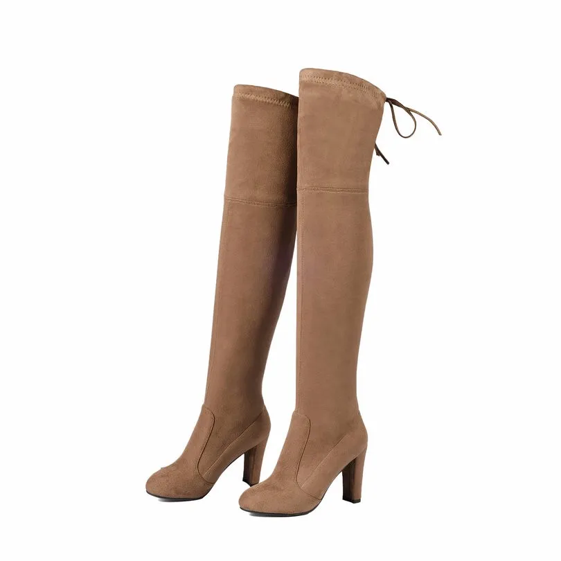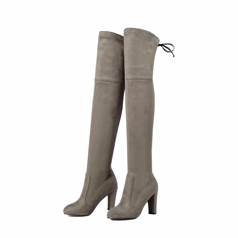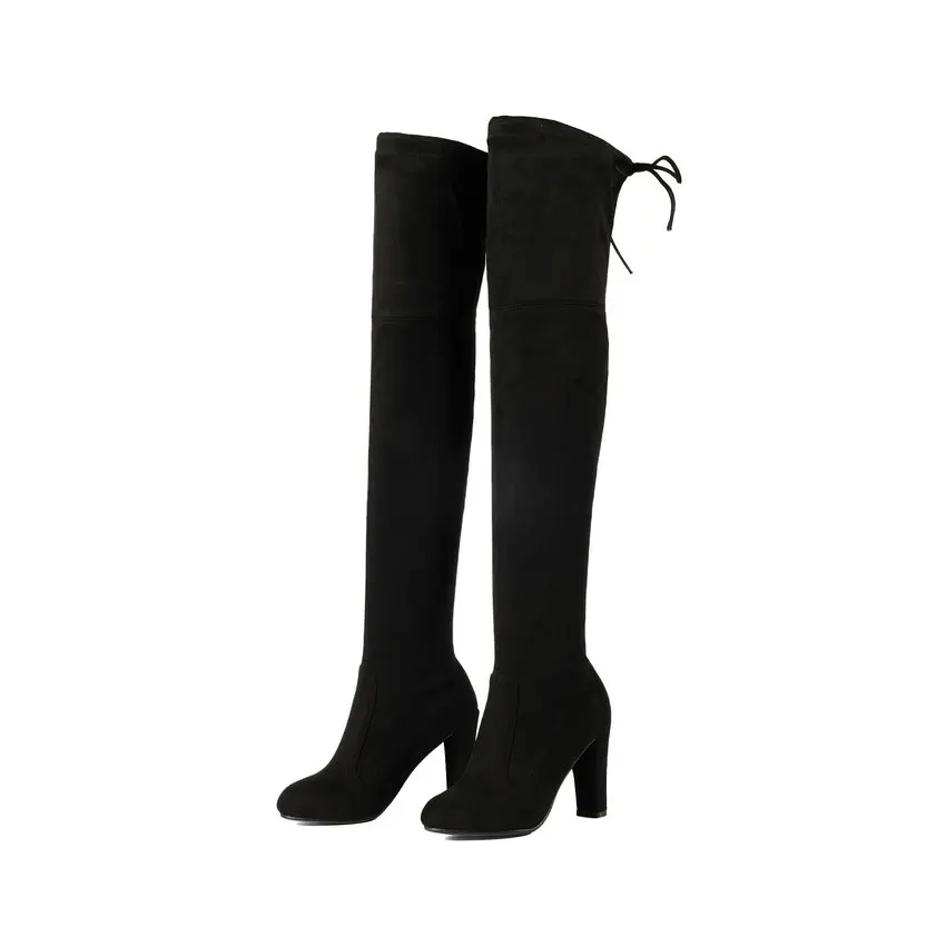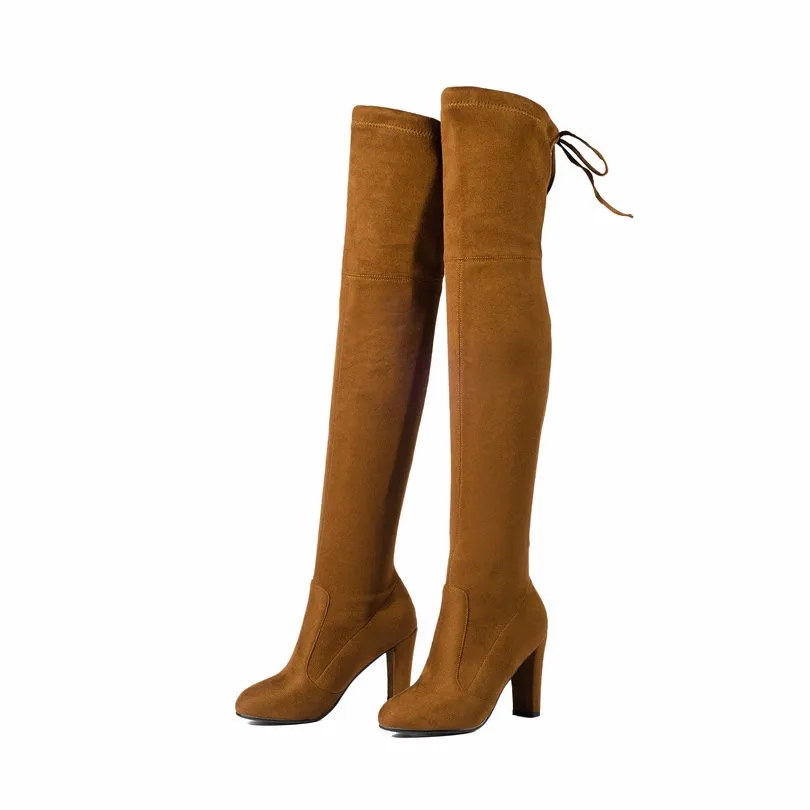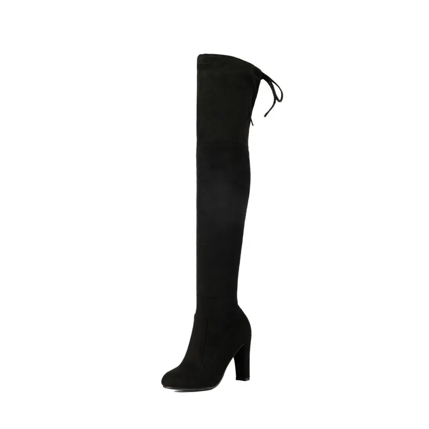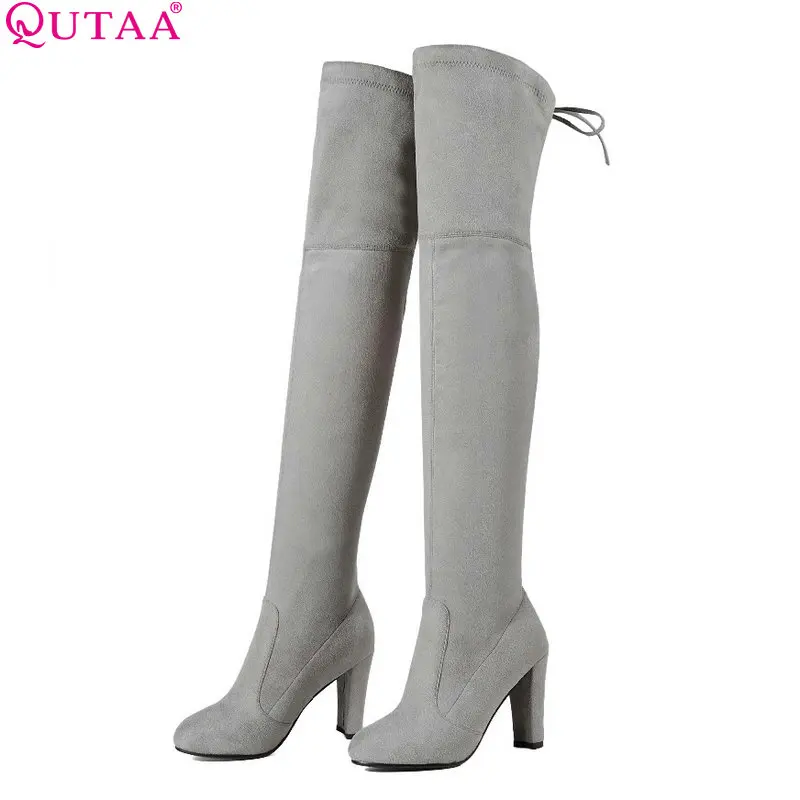 QUTAAженские ботфорты выше колена; Пикантная женская обувь из искусственной кожи на высоком квадратном каблуке; Зимние теплые мотоботы; Размеры 34-43; 2020
