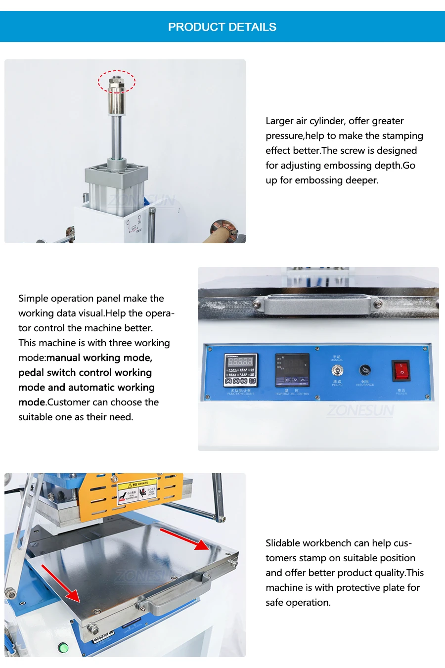 ZONESUN ZS-819D 2030 см пневматическая визитная карточка с логотипом кожаный термопресс Горячее тиснение фольгой сгибание тиснение большая площадь