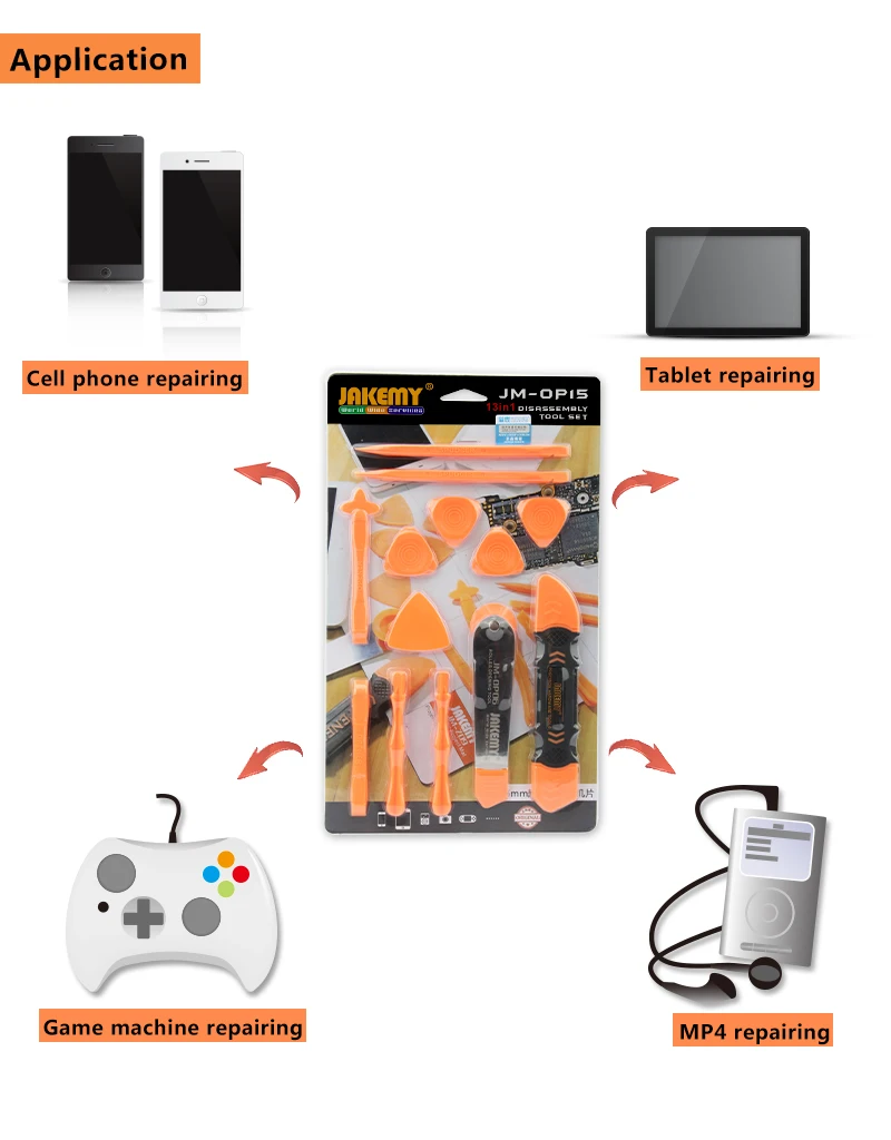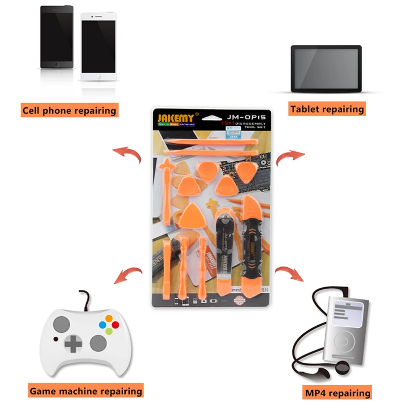 Инструменты JAKEMY 13 в 1 для ремонта смартфонов iPhone iPad Samsung Tablet мобильный телефон, Наборы инструментов для разборки ЖК-экрана
