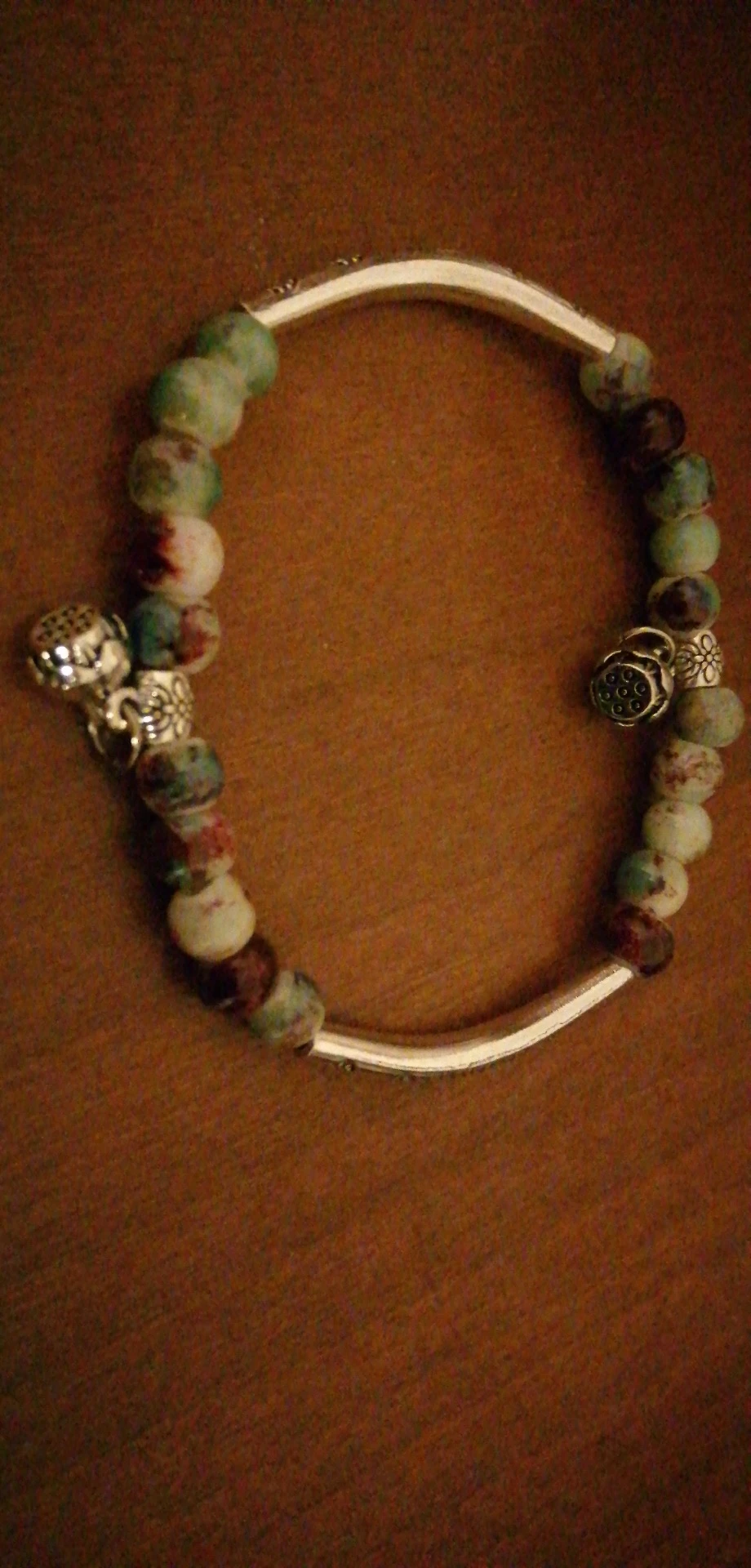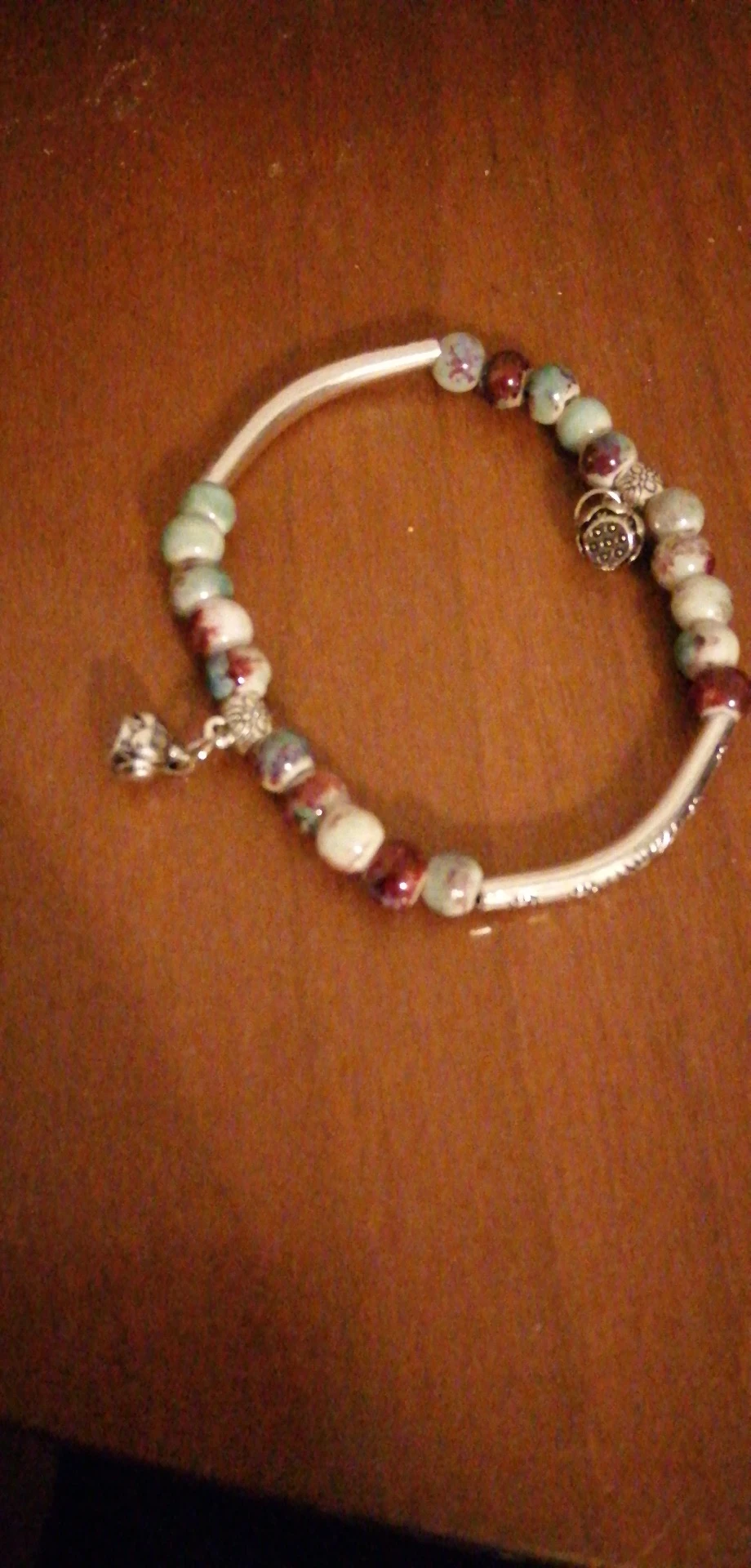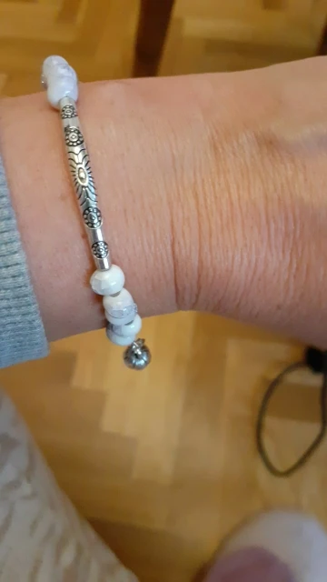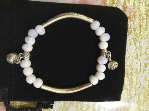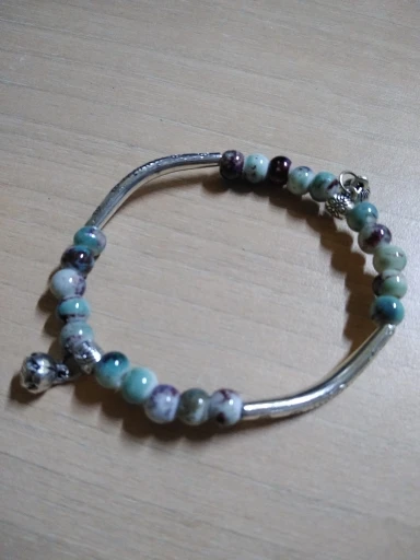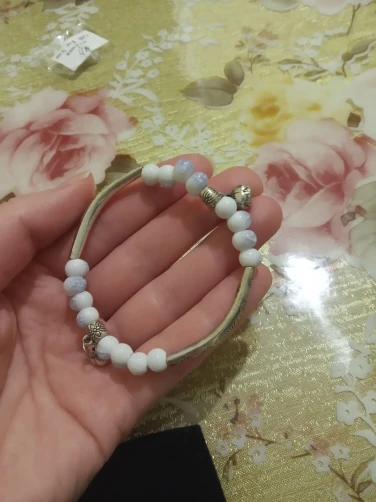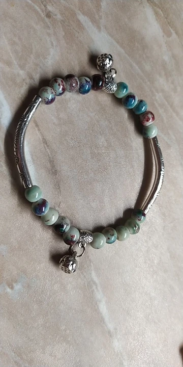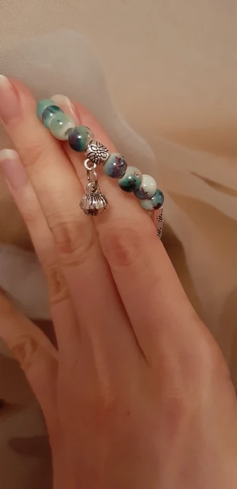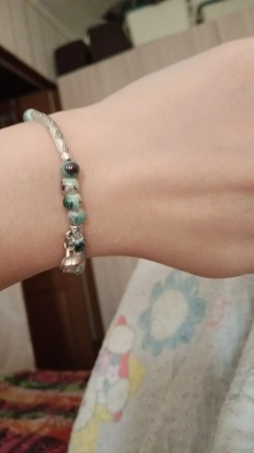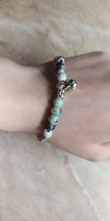 Изящный браслет. мне очень нравится. цвет керамических шариков менее насыщенный чем на картинке, но тоже хорошо смотрится. выглядит неброско. браслет без дефектов, все детали имеют чёткую форму и рисунок. думаю не стоит бояться, что порвётся.