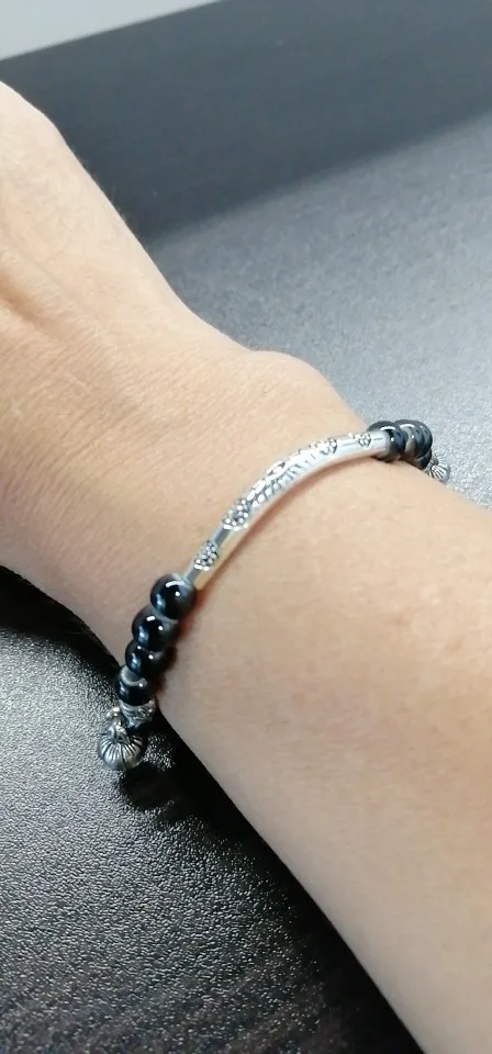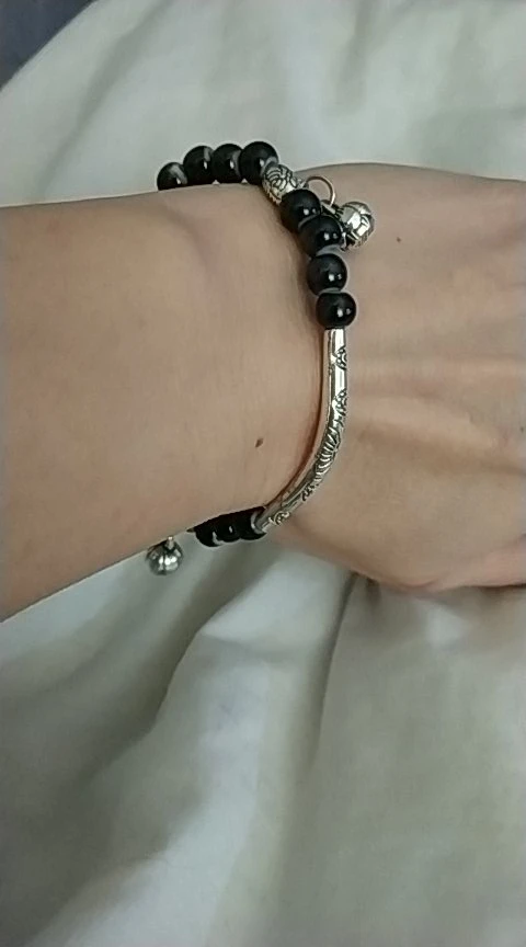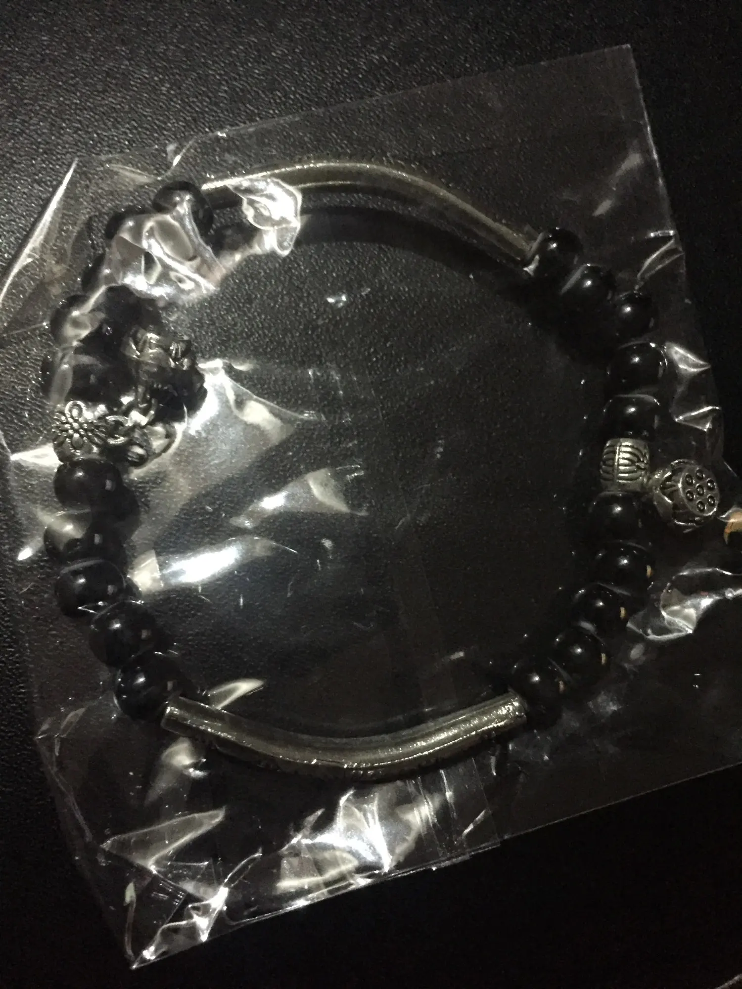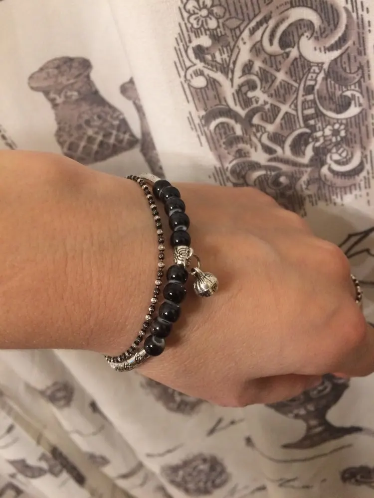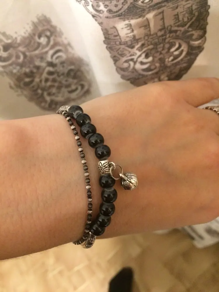 Очень красивый браслет с черными бусинами на резинке. Подойдет на любой размер руки. Спасибо продавцу за оперативность.