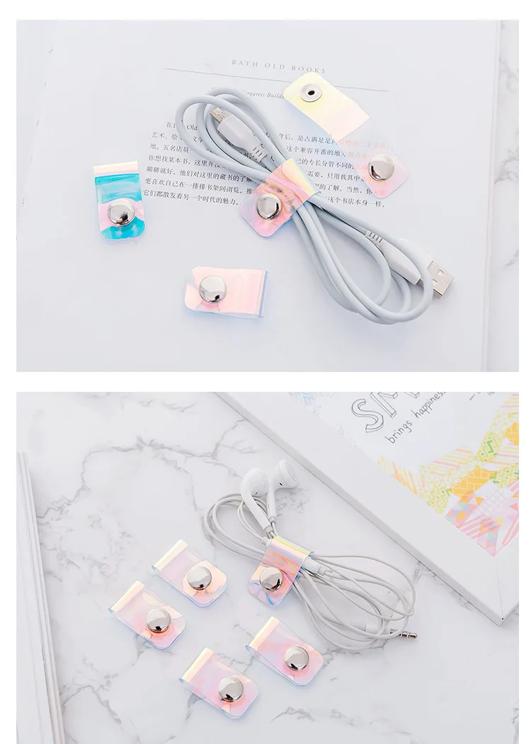 20 шт.лот прозрачная Яркая Цветная намотка для кабеля наушников и кабелей органайзер для проводов Держатель шнура для iphone samsung