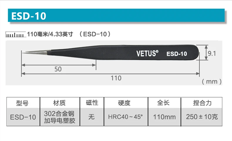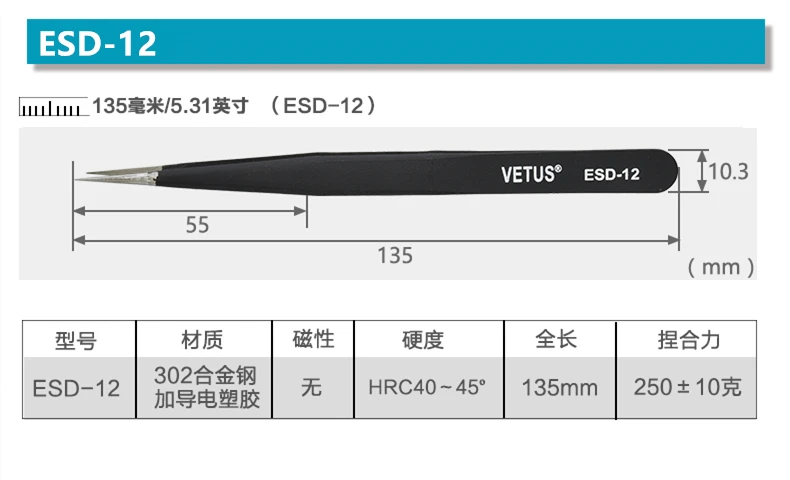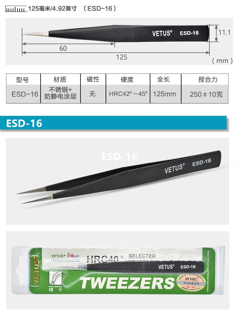Оригинальный Пинцет для наращивания ресниц VETUS, 100% Пинцет для нейл-арта, высокоточный Инструмент из нержавеющей стали