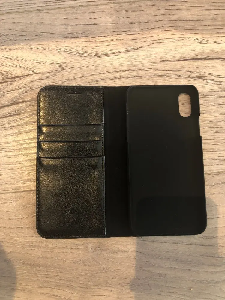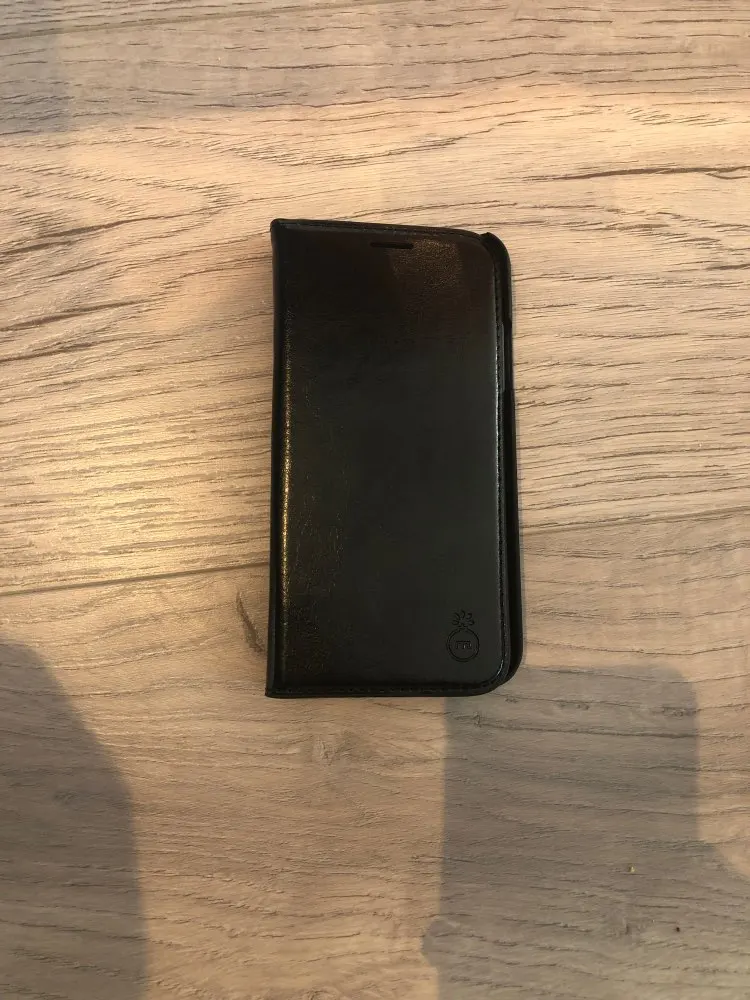 Хороший продукт. Хорошо держит телефон. Есть место для 3 карт и денег в большом отверстии сбоку. Швы с черной нитью. Легко смотреть фильмы с помощью этого мобильного чехла, так как телефон может затем стоять на столе с помощью чехла. Отлично.