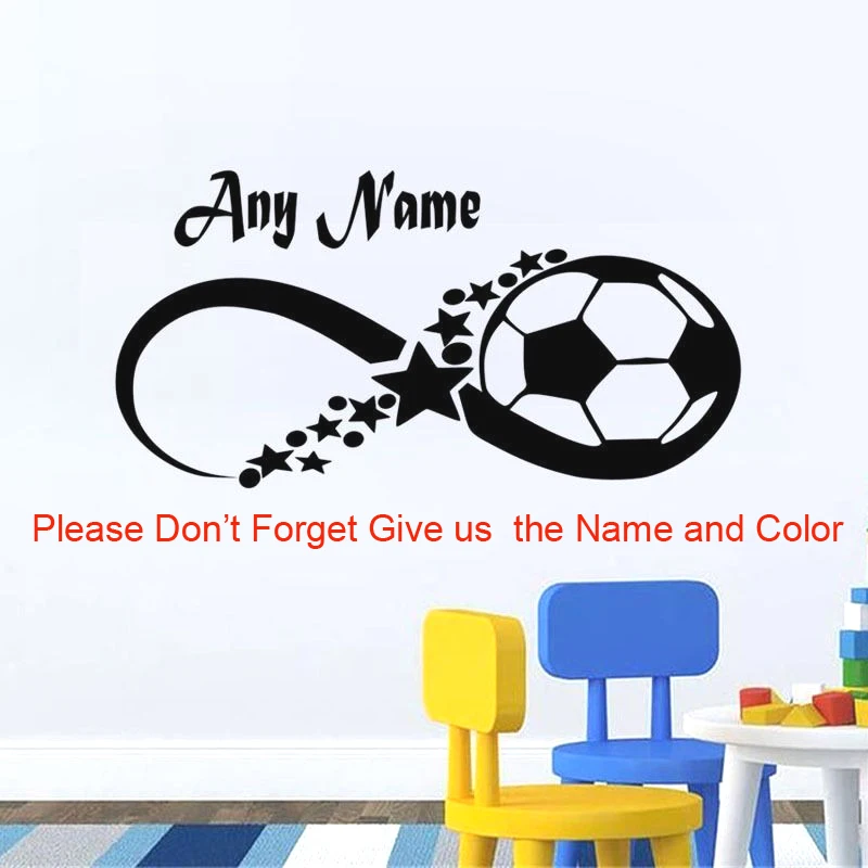 Настенная Наклейка YOYOYU на заказ с именем мальчиков, футбольной звездой, персонализированная виниловая наклейка на стену, детская комната, постер для спальни, Декор